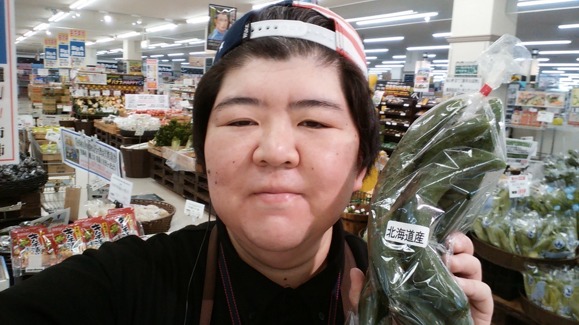 おはようございます。青果担当奥瀬です。本日も、北海道産の徳用きゅうりがお買い得です。約700グラム入って、299円です。お買い得ですので、是非ご利用ください。
