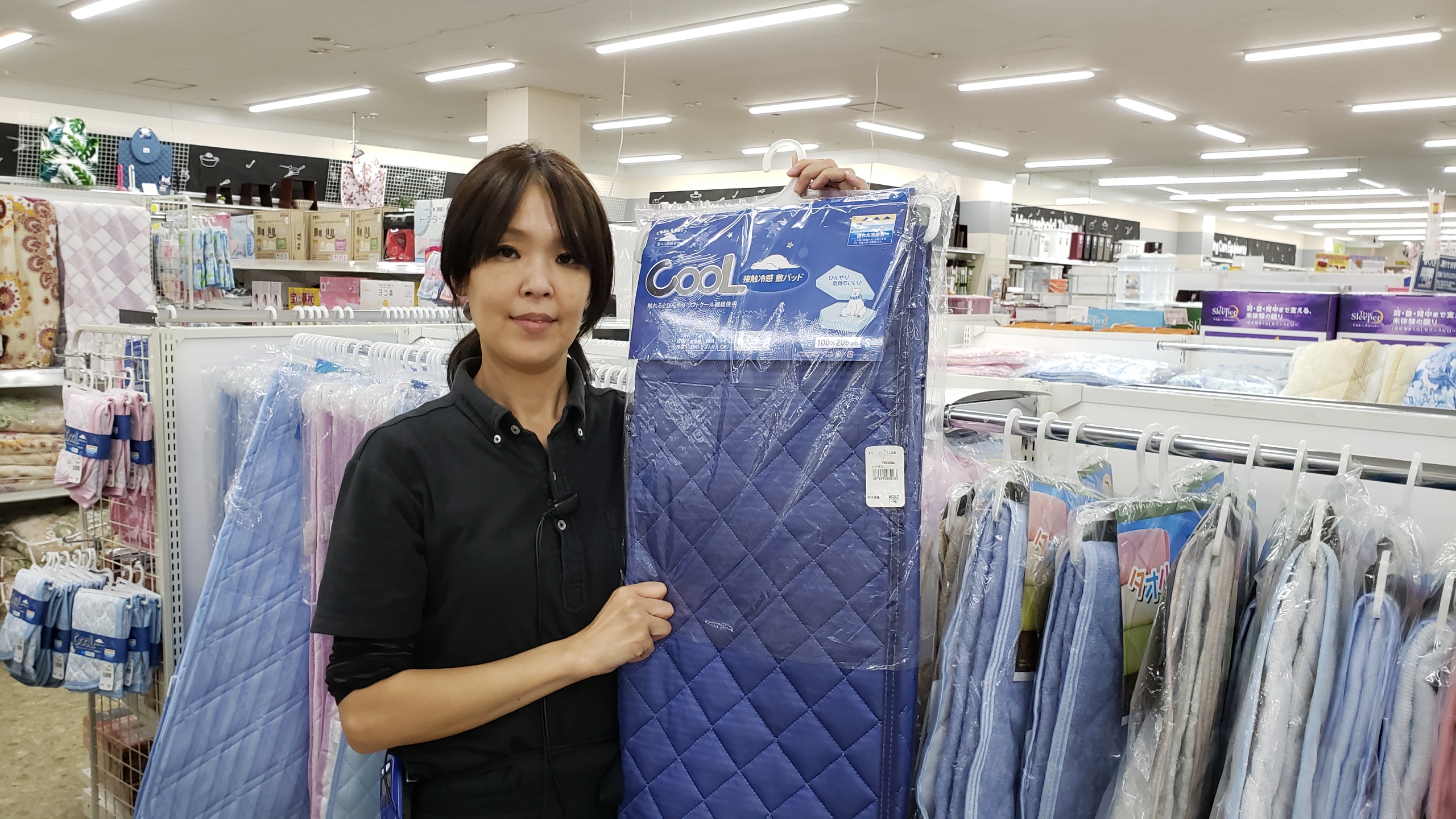 インテリアコーナーからは!触れるとひんやり、ソフトクール繊維使用、接触冷感敷パッド!シングルサイズ 100cm×205cm価格は980円です。是非お買い求めくださいませ。