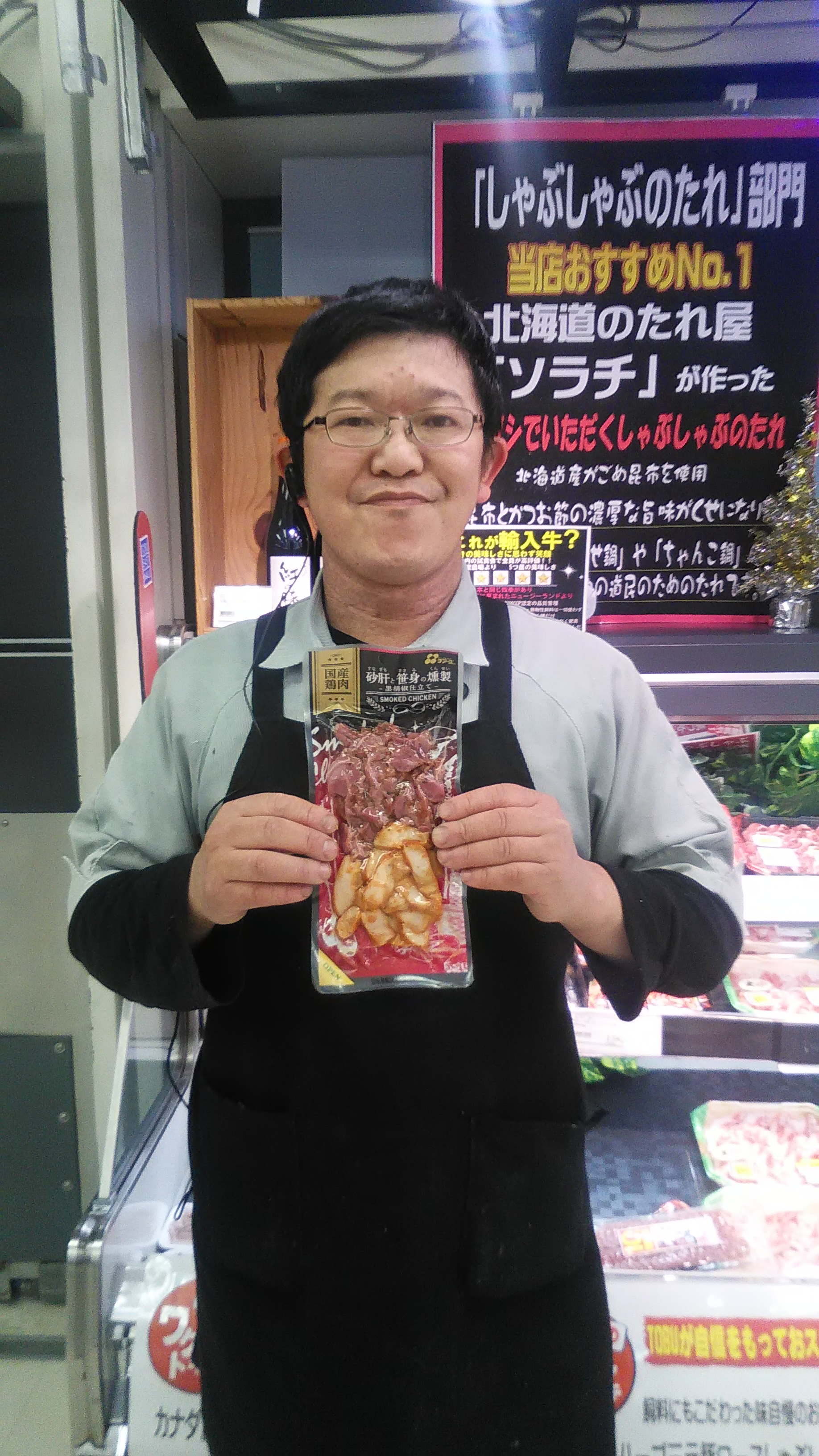 おはようございます。ミート近藤です 。砂肝と笹身の燻製を荒挽きの黒胡椒で大人向けの味に仕上げました。ピリッとした刺激がビールに良く合います。