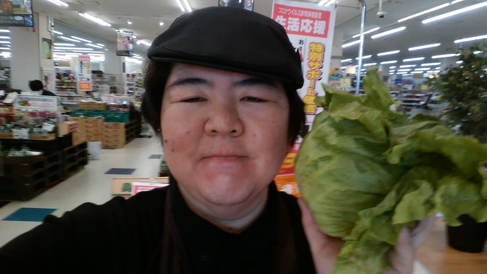 おはようございます。青果担当奥瀬です。本日もスーパー大均一祭開催中です。青果コーナーからは、生活応援サポート価格商品として、女満別産のレタスがお買い得です。1玉89円です。他にもお買い得商品取り揃えております。是非ご利用ください。