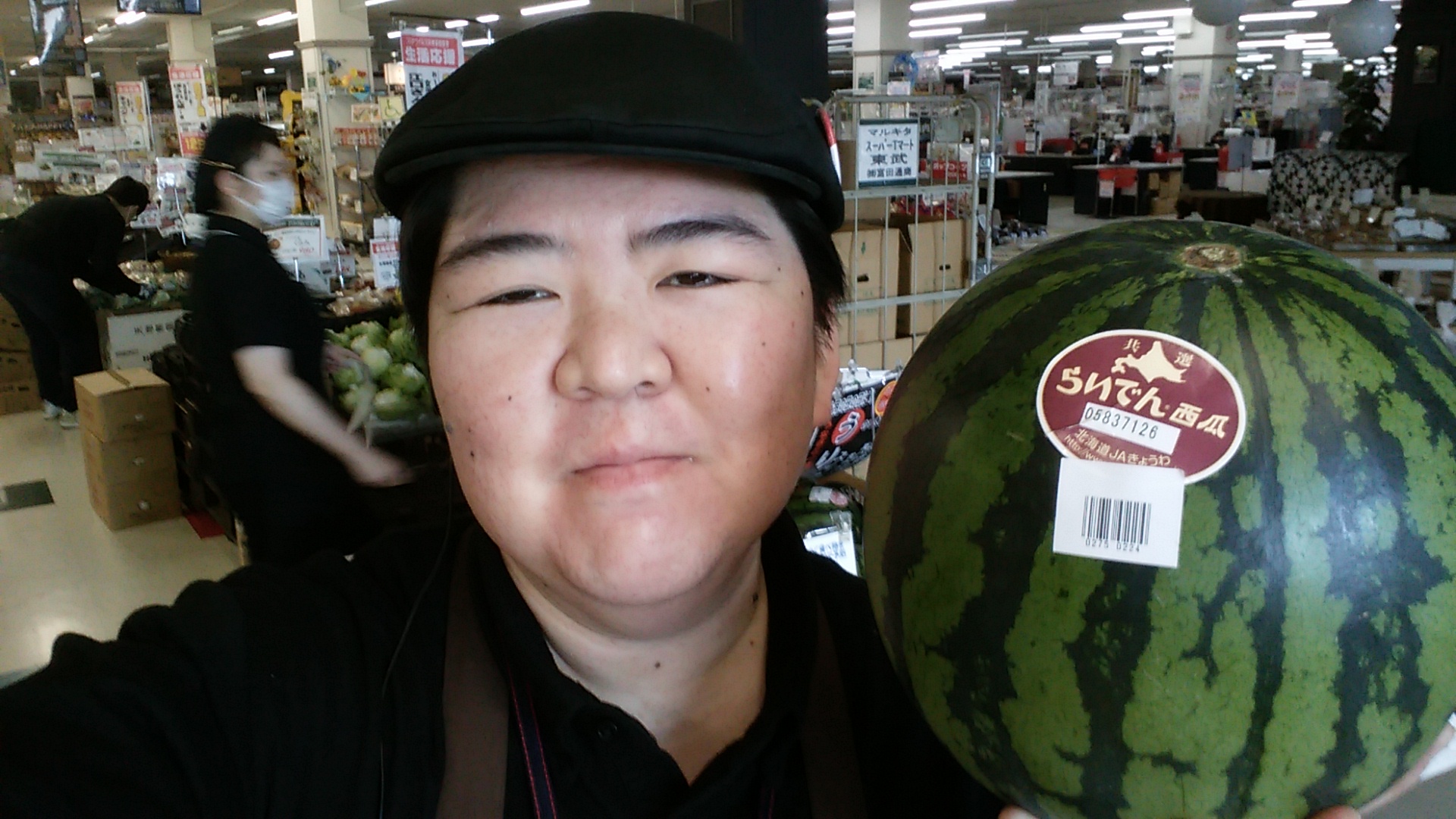 おはようございます。青果担当奥瀬です。本日は土用の丑の日。うなぎは勿論ですが、「う」のつく食べ物を食べて夏バテ防止しましょう。青果コーナーからはうり、という事で西瓜はいかがですか?共和町産 らいでんすいか1玉1500円です。是非ご利用ください。皆様のご来店お待ちしております!