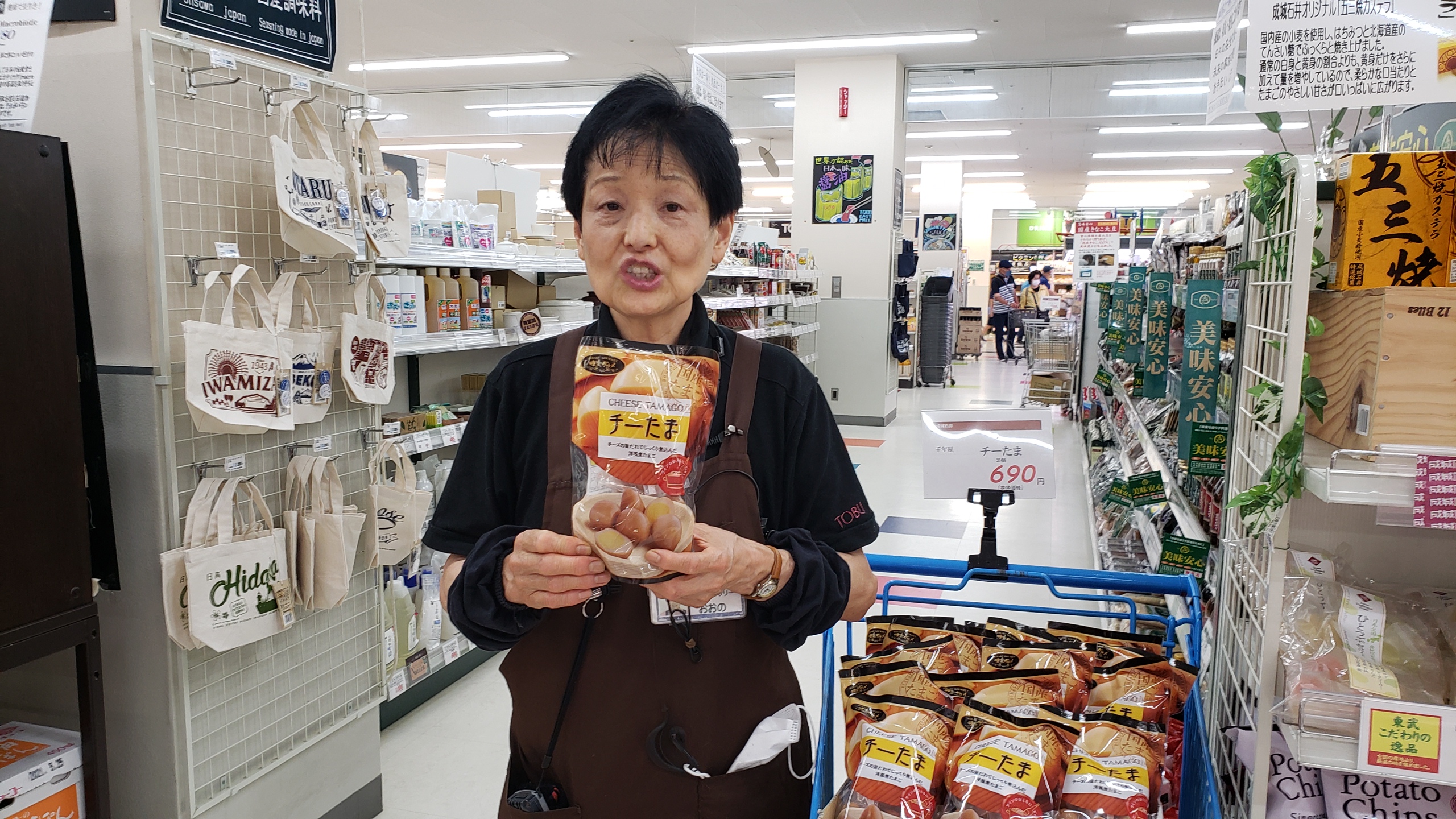 食品コーナーからは!人気の成城石井の新商品!(株)千年屋 チーズたまです。チーズの旨だれでじっくり煮込んだ 洋風煮たまごです!ワインのおつまみにも最適!価格は20コ入りで690円です。是非お買い求めくださいませ。