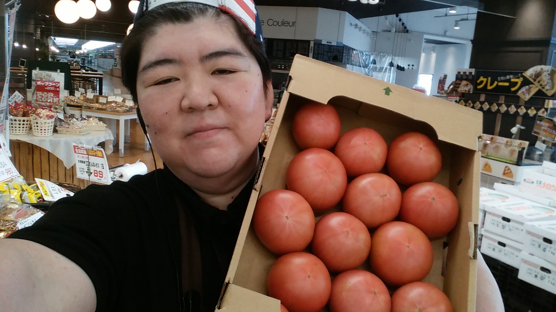 おはようございます。青果担当奥瀬です。本日は箱とまとがお買い得です。美瑛産 とまと 約4kg入り 1箱 1280円です。是非ご利用ください。
