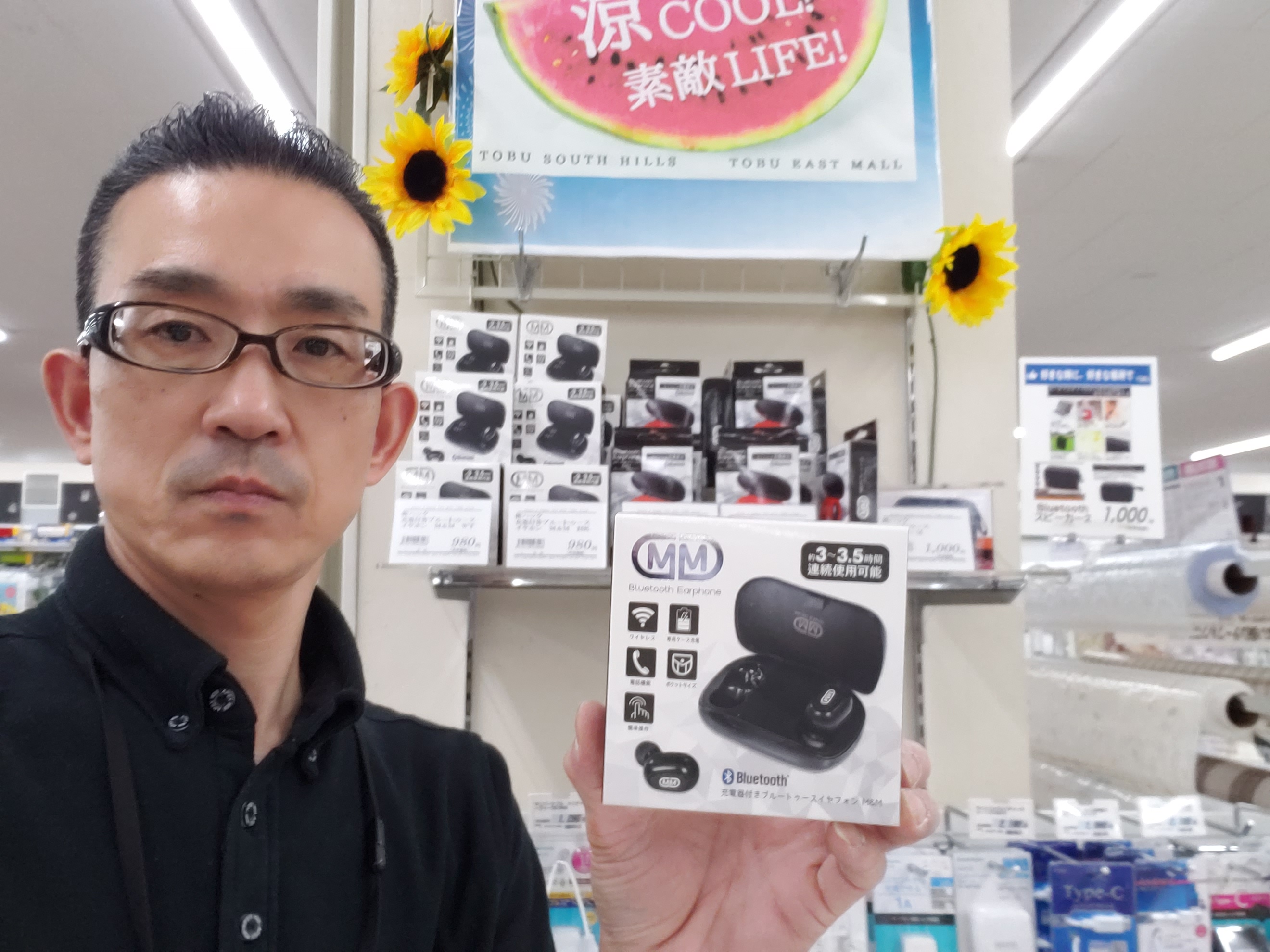 家電コーナーからは! お買得です!(株)ハック 充電式Bluetoothイヤホンです!ワイヤレスなのでコード がジャマにならない!連続使用約3~3.5時間です。価格は980円です。是非お買い求めくださいませ。