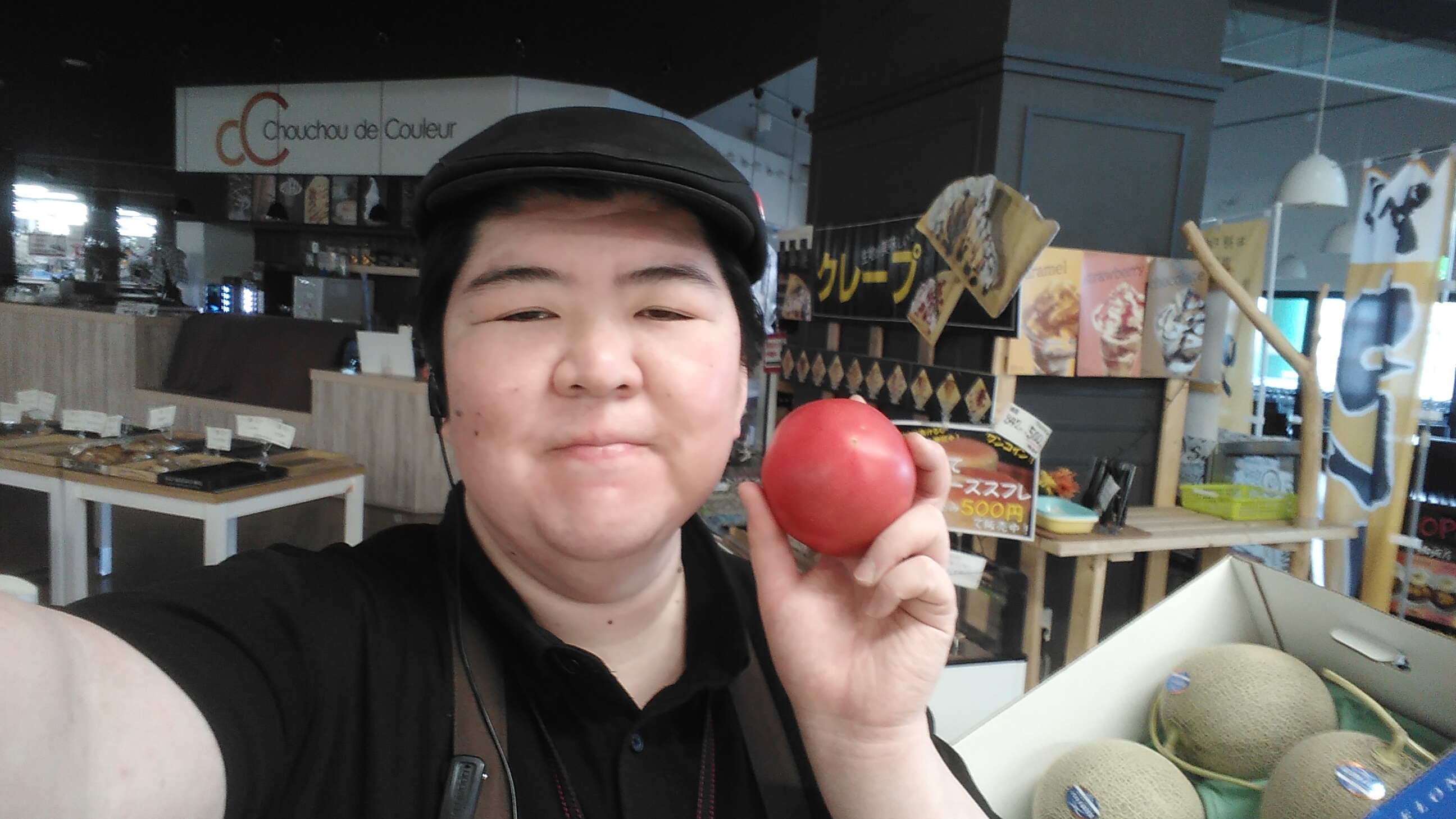 おはようございます。青果担当奥瀬です。本日もスーパー大均一祭開催中です。北海道産のとまとが1玉77円です。お買い得です。是非ご利用くださいませ。