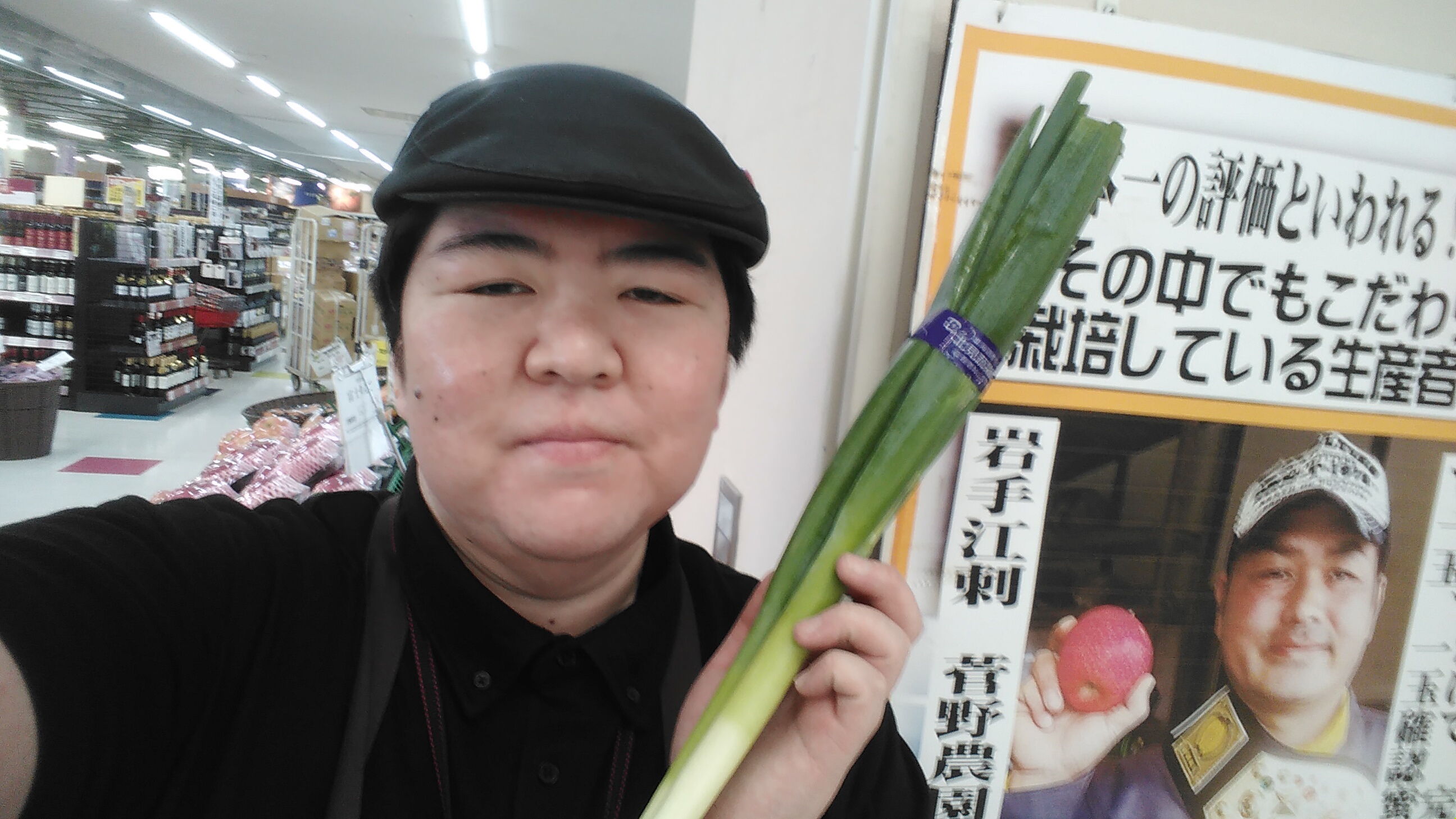 おはようございます。青果担当奥瀬です。本日は北海道産長ねぎがお買い得です。長ねぎ1束195円。お買い得です。是非ご利用くださいませ。