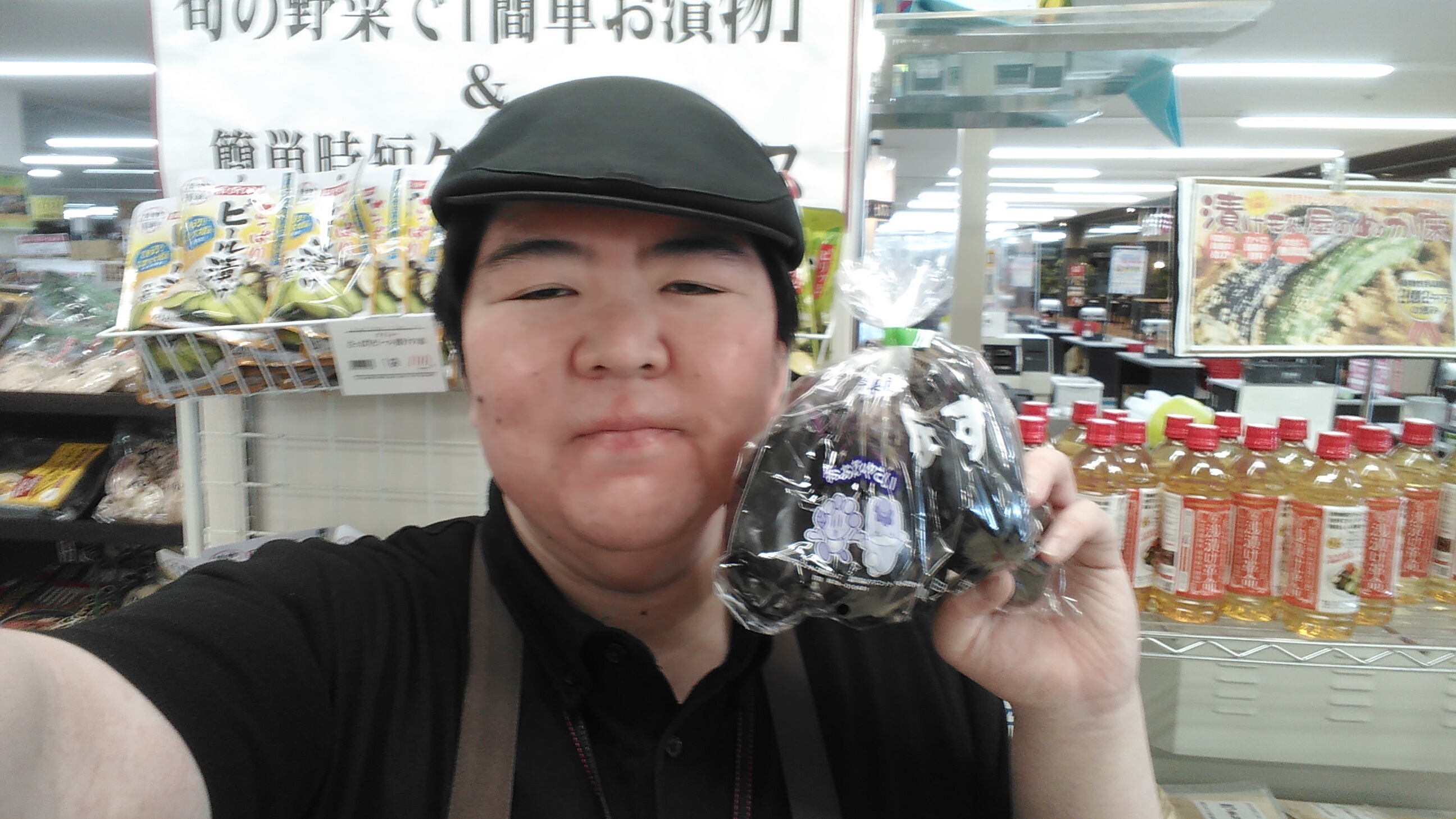 おはようございます。青果担当奥瀬です。本日はなすがお買い得です。群馬他産 なす 5本入1袋が280円です。お買い得ですので、是非ご利用ください。