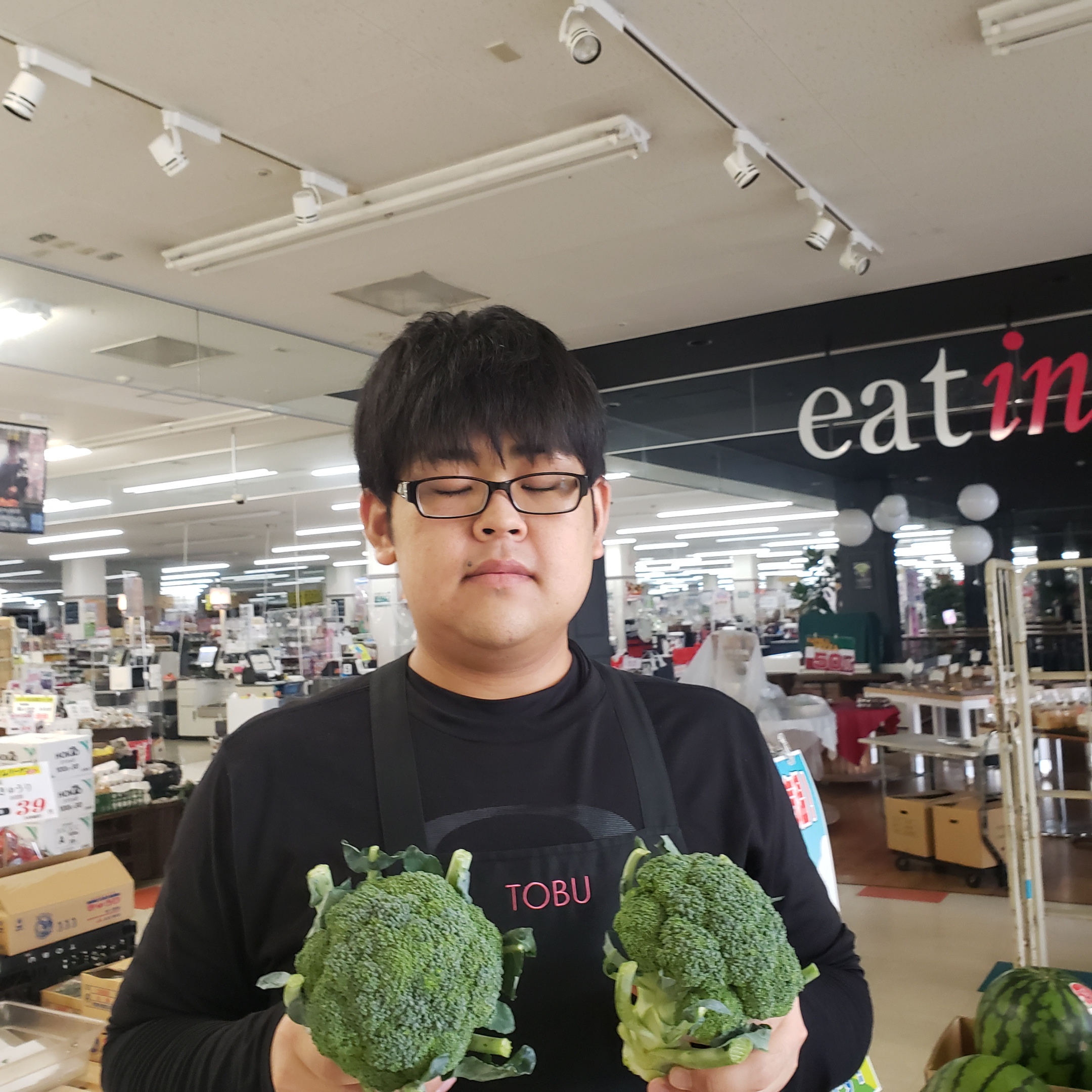 青果コーナーのおすすめ。女満別産ブロッコリーがお買得です。1個99円にて販売します
