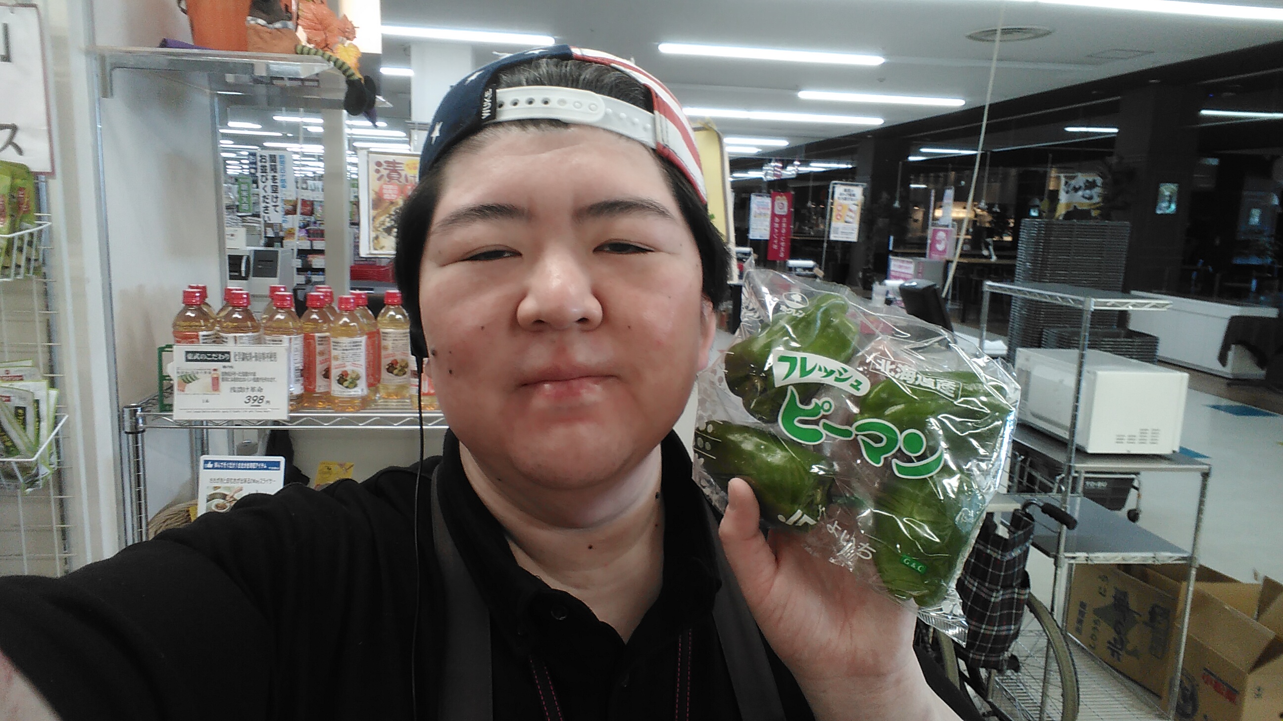 おはようございます。青果担当奥瀬です。本日はピーマンがお買い得です。北海道産ピーマン 1袋 99円です。BBQにもいかがでしょうか?その他にもお買い得商品を取り揃えております。是非ご利用くださいませ。
