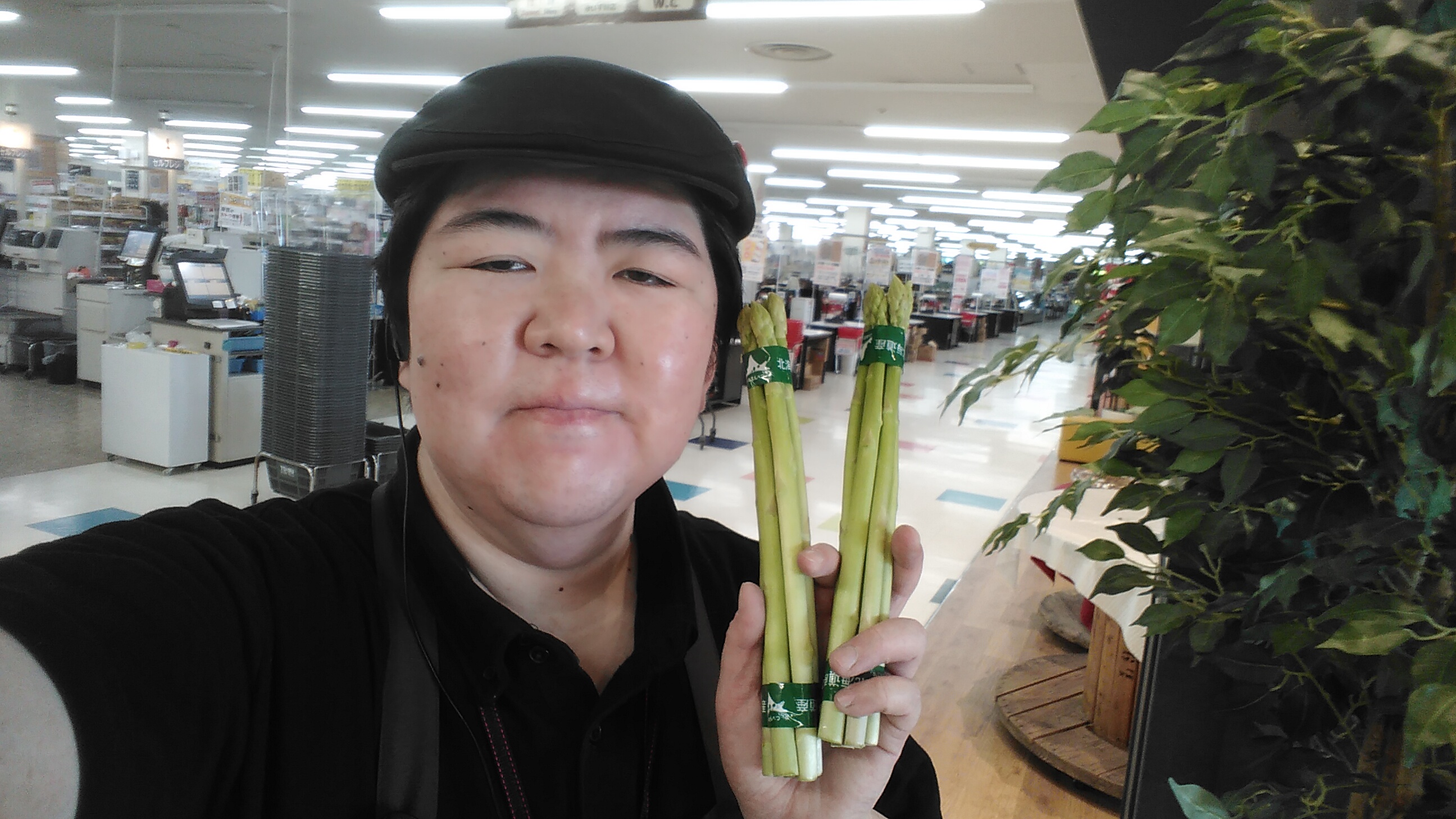 おはようございます。青果担当奥瀬です。本日はグリーンアスパラがお買い得です。北海道産 グリーンアスパラ 1束 138円です。お買い得ですので、是非ご利用くださいませ。