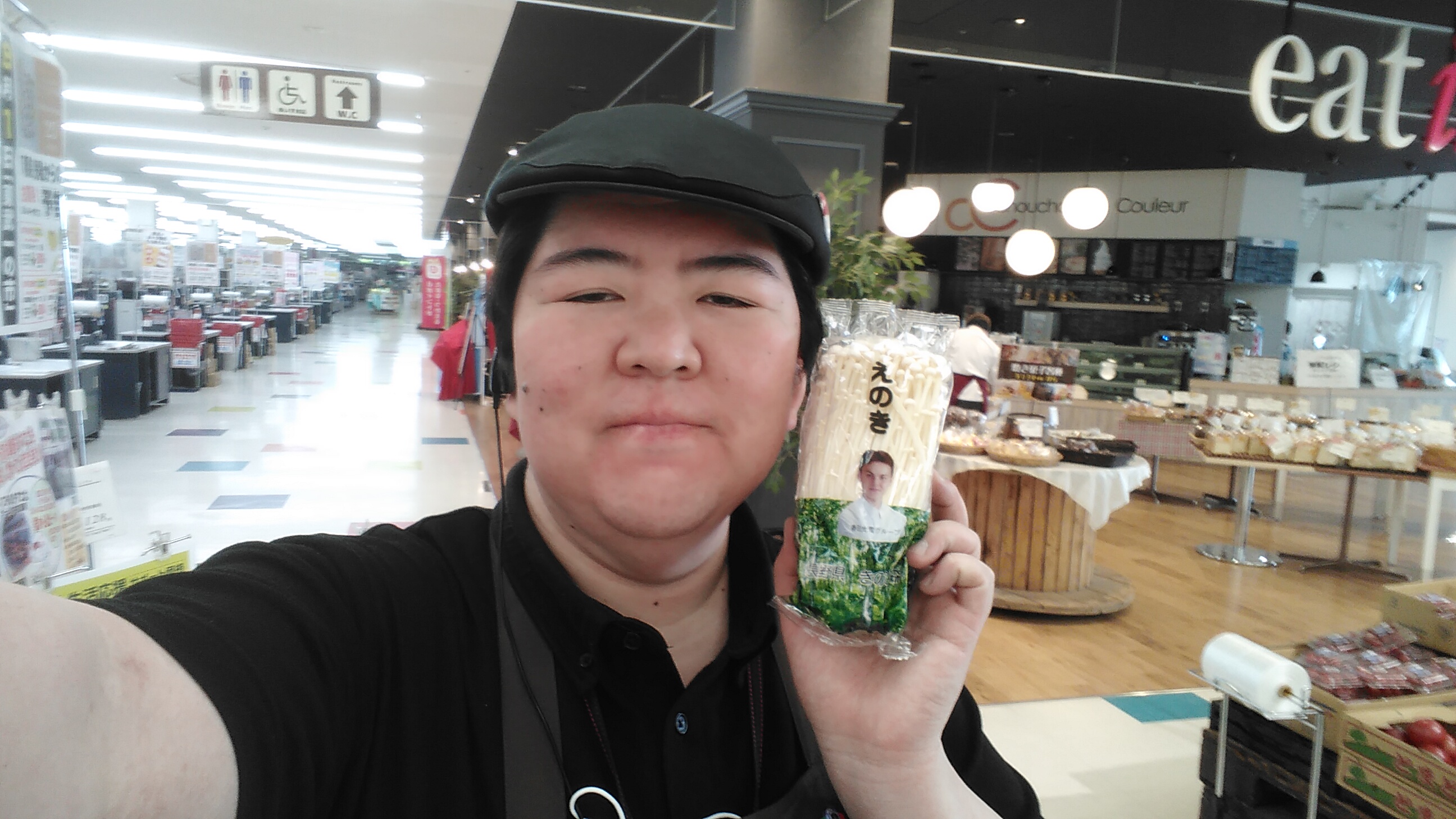 おはようございます。青果担当奥瀬です。本日もスーパー大均一祭です。野菜コーナーからは、長野産他 えのき茸 200g1袋 77円とお買い得です。是非ご利用ください。