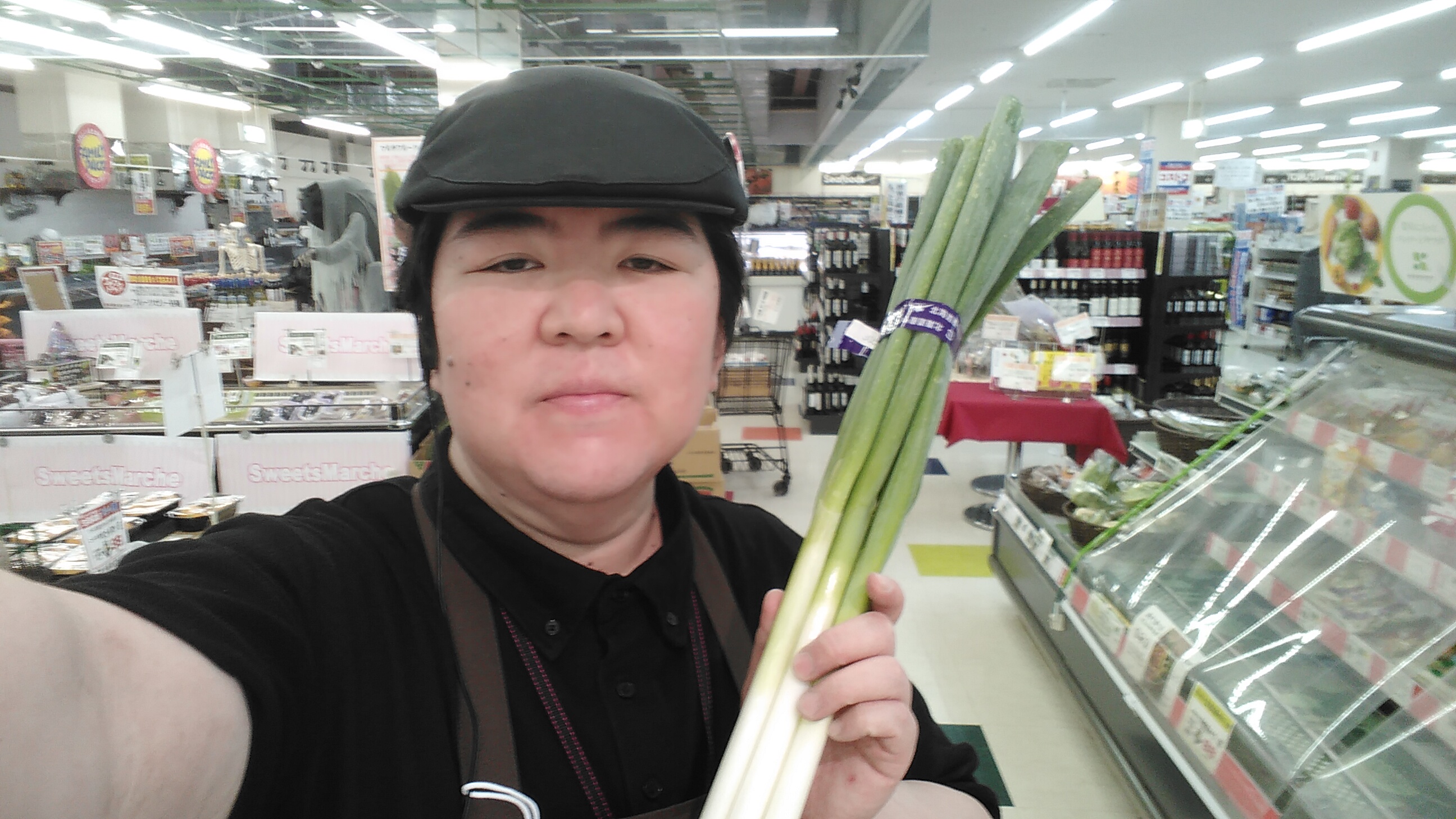 おはようございます。青果担当奥瀬です。本日は長ねぎがお買い得です。北海道産長ねぎ 1束99円です。お買い得です。是非ご利用ください。