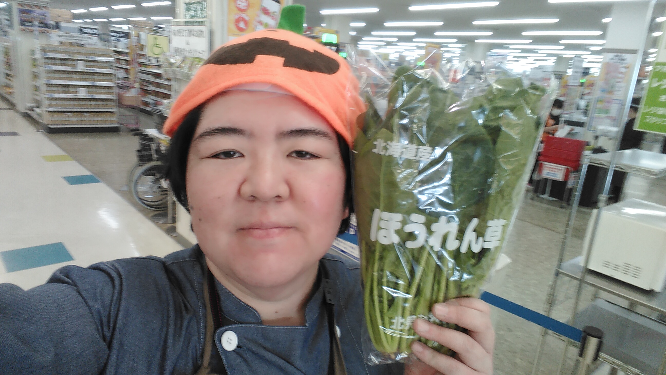 おはようございます。青果担当奥瀬です。本日はほうれん草がお買い得です。1袋178円です。是非ご利用くださいませ。