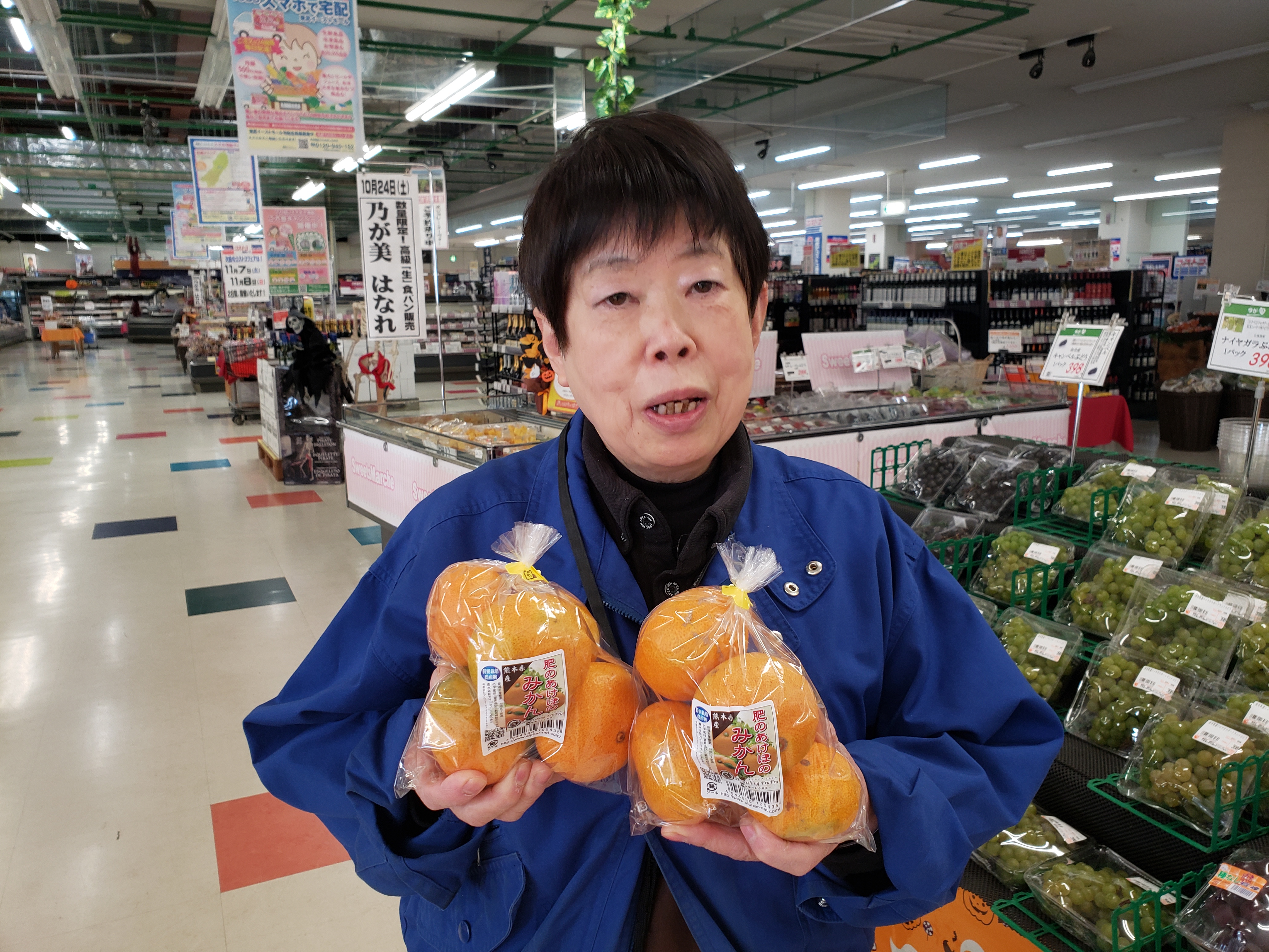 青果コーナーのオススメ!熊本産吉田さんの肥のあけぼのみかん。除草剤不使用の味の濃いみかんです