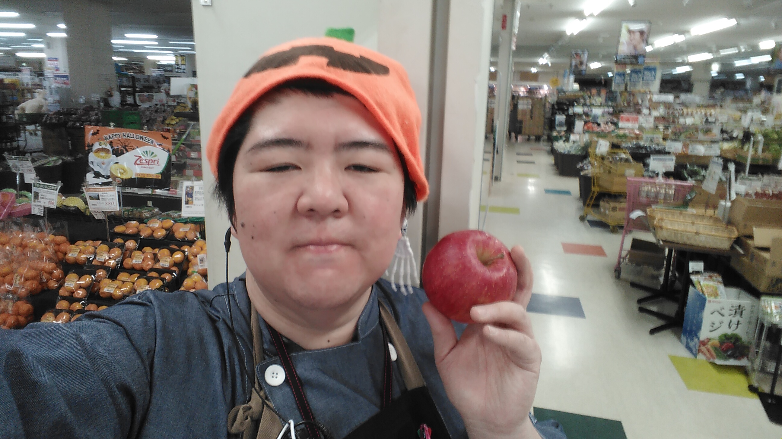 おはようございます。青果担当奥瀬です。本日はりんごがお買い得。青森産 早生ふじりんご、岩手産トキりんご、各1玉99円です。是非ご利用くださいませ。