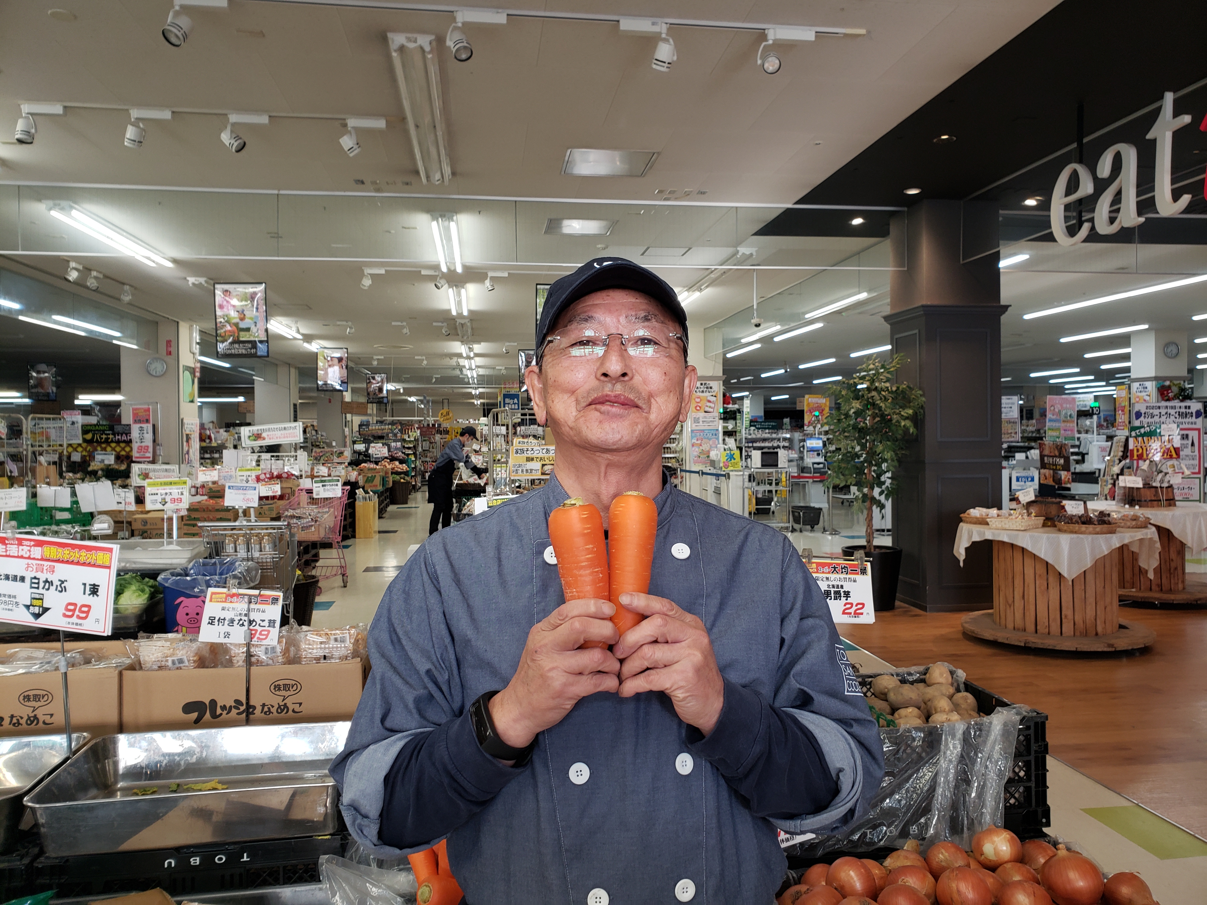 青果コーナーのオススメ!北海道産人参がお買得です。1本33円にて販売します。