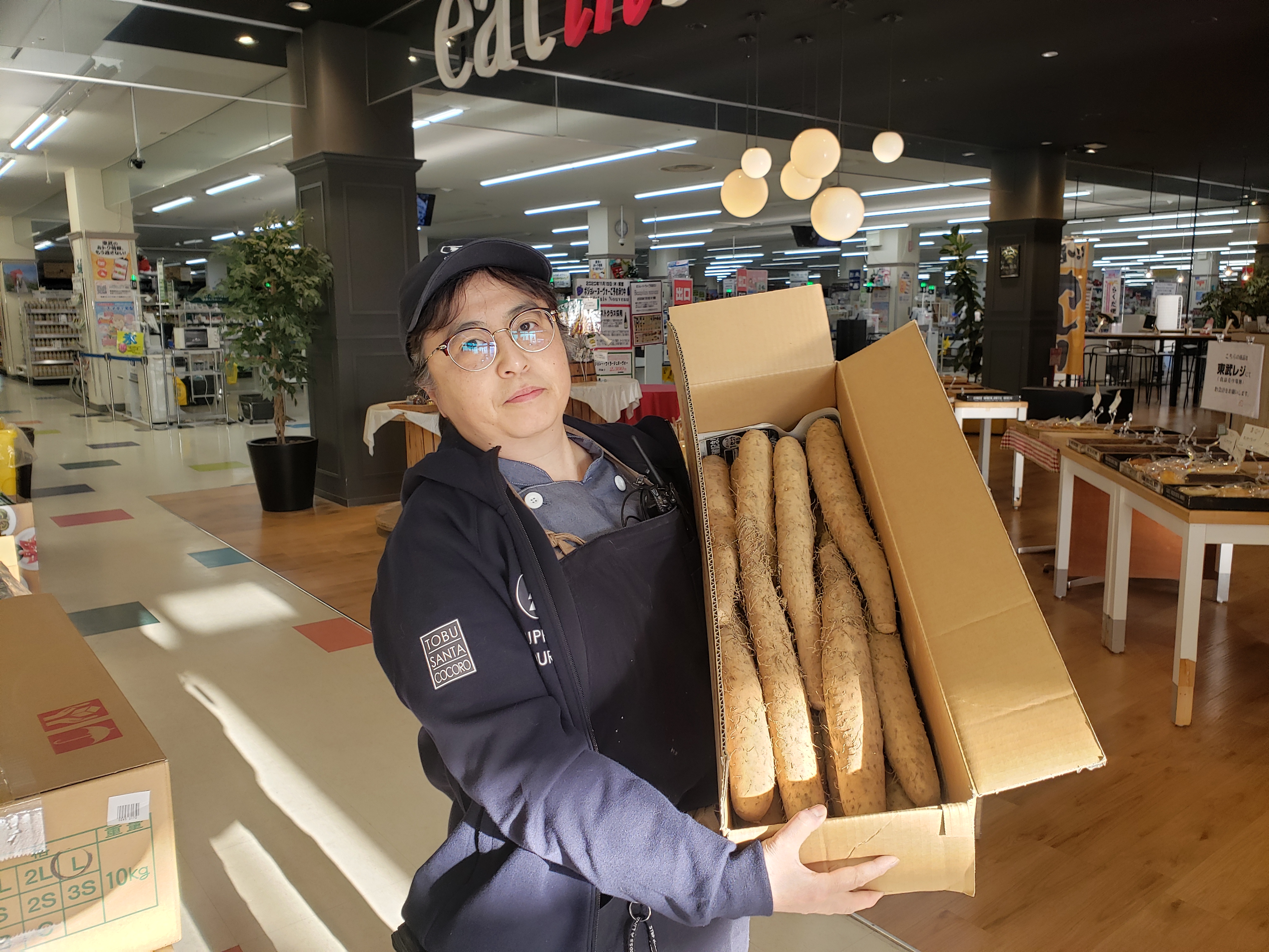 青果コーナーのオススメ!今年の新物土つき長芋入荷しました。10キロ1箱3980円にて販売します