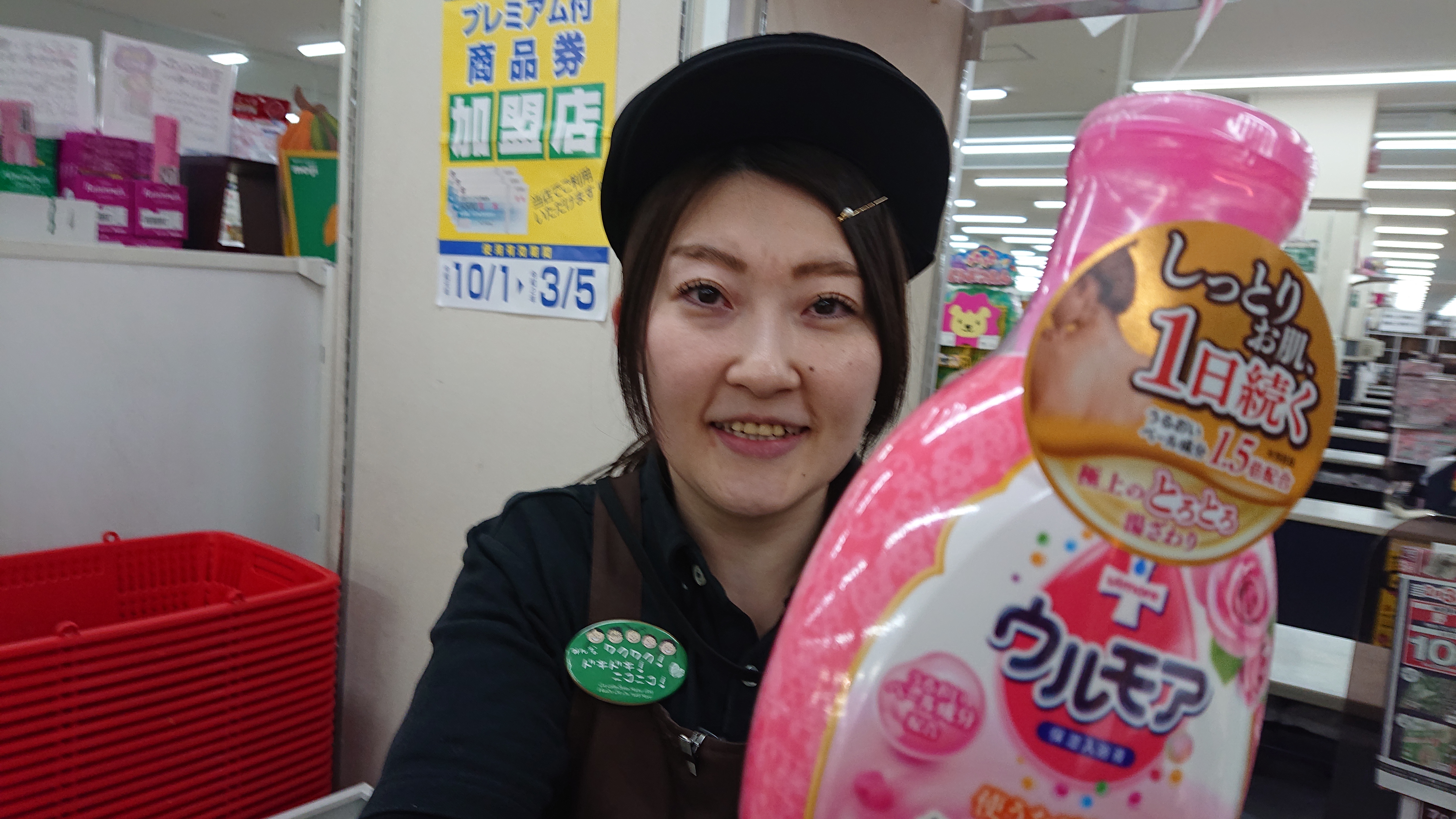おはようございます。家庭消耗品担当小西です。本日のおすすめ商品は、ウルモア入浴剤です。1日中しっとりお肌続きます。