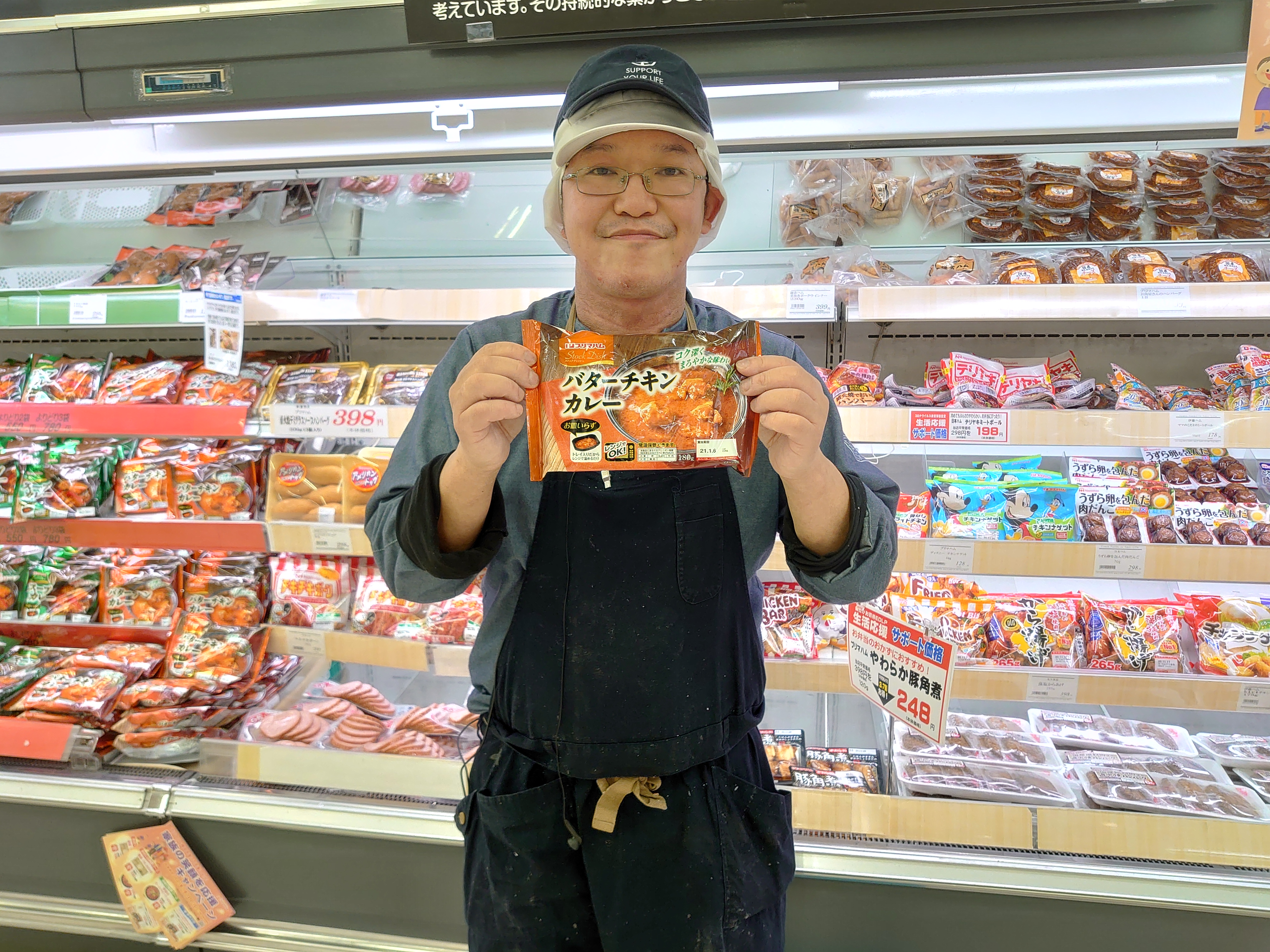 おはようございます。ミート担当近藤です。濃厚なバターのコクとソテーされたたまねぎの甘みと旨みがあと引く味わいの一品です。カレーソースにはバター、牛乳、三温糖を使いマイルドな味付けに仕上げています。