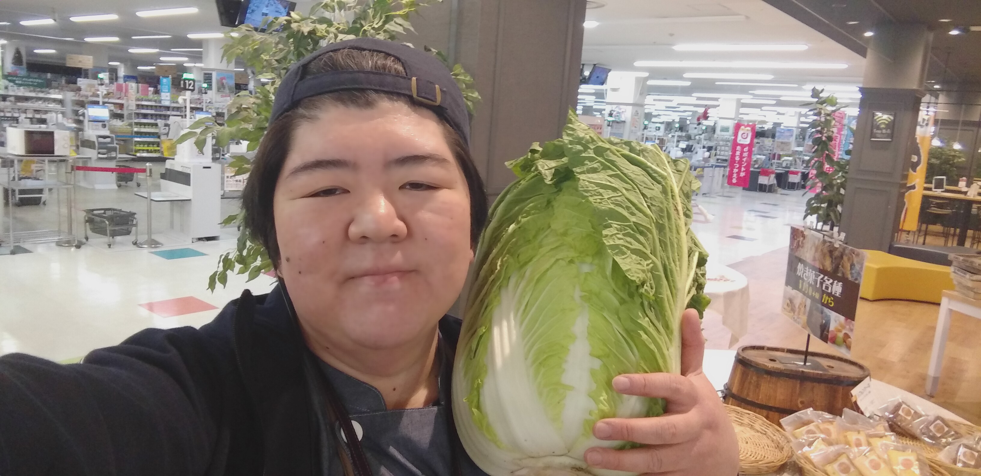 おはようございます。青果担当奥瀬です。本日は白菜がお買い得です。茨城産 白菜 1玉 299円です。これからの時期、鍋になくてはならない白菜。漬物にも出来るので、1玉使い切っちゃってください。ご来店お待ちしております!