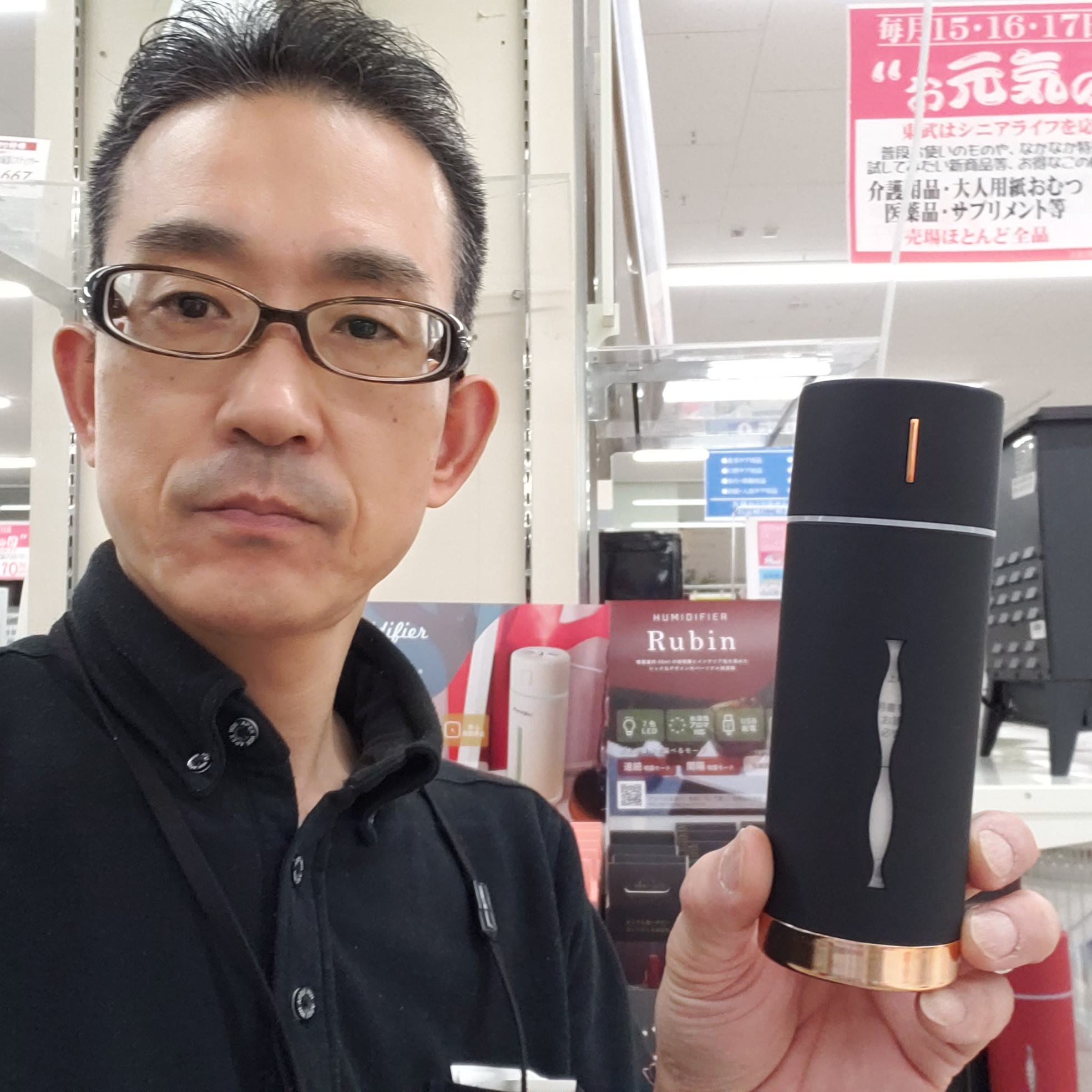 家電コーナーからは!どこでも使いやすいコンパクトタイプの加湿器ミニ ルビンです。噴霧量約40mlの強噴霧とインテリア性を高めたシックなデザインのパーソナル加湿器です。USB充電で稼働最大約5時間です。カラーも4色、価格は2480円です!是非お買い求めくださいませ。