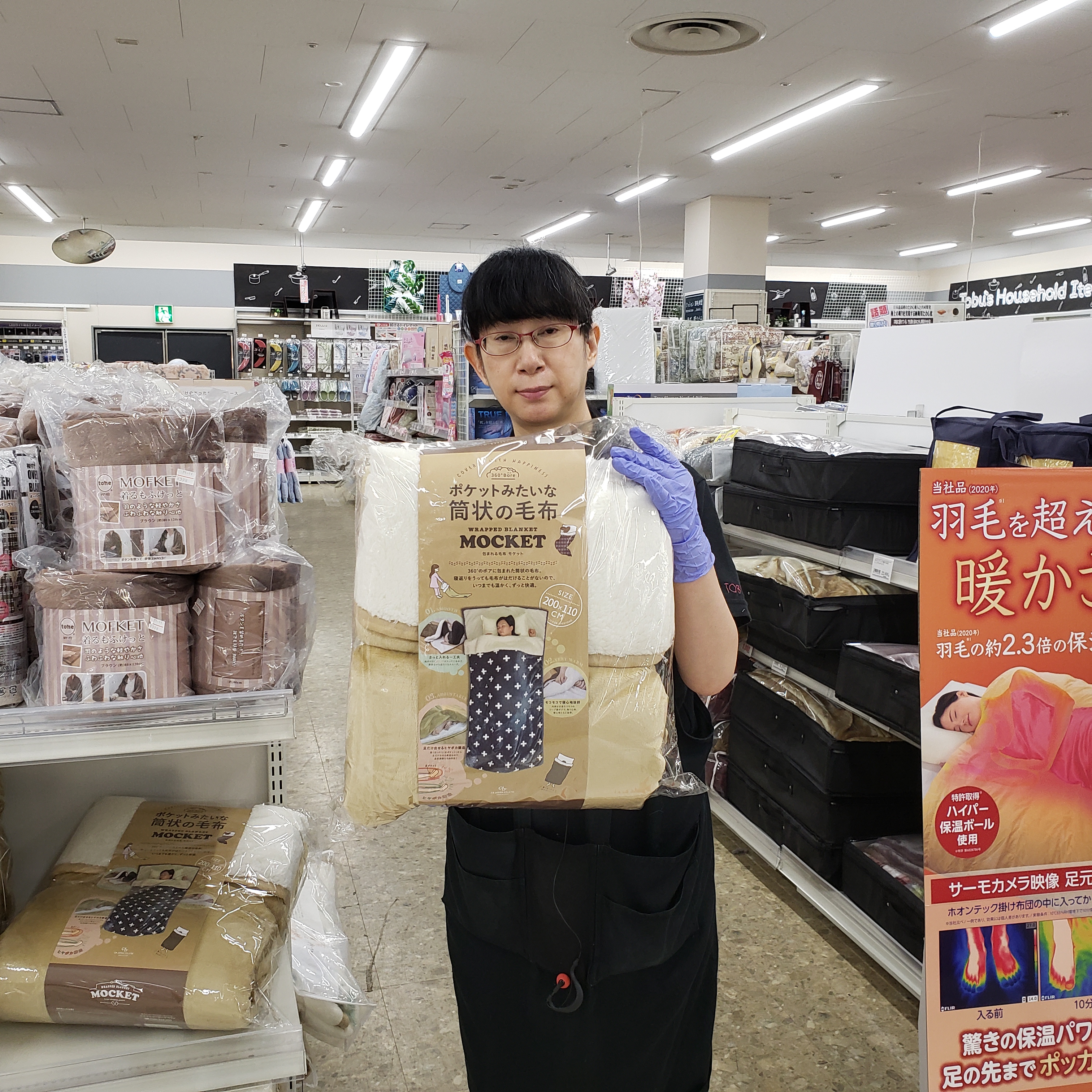 インテリアコーナーからは!お買得です!昨年人気のポケットみたいな筒状の毛布です。360度ボアに包まれて寝返りをうっても毛布がはだけることがないですよ!サイズは200cm ×110cm 価格は2980円です。是非お買い求めくださいませ。