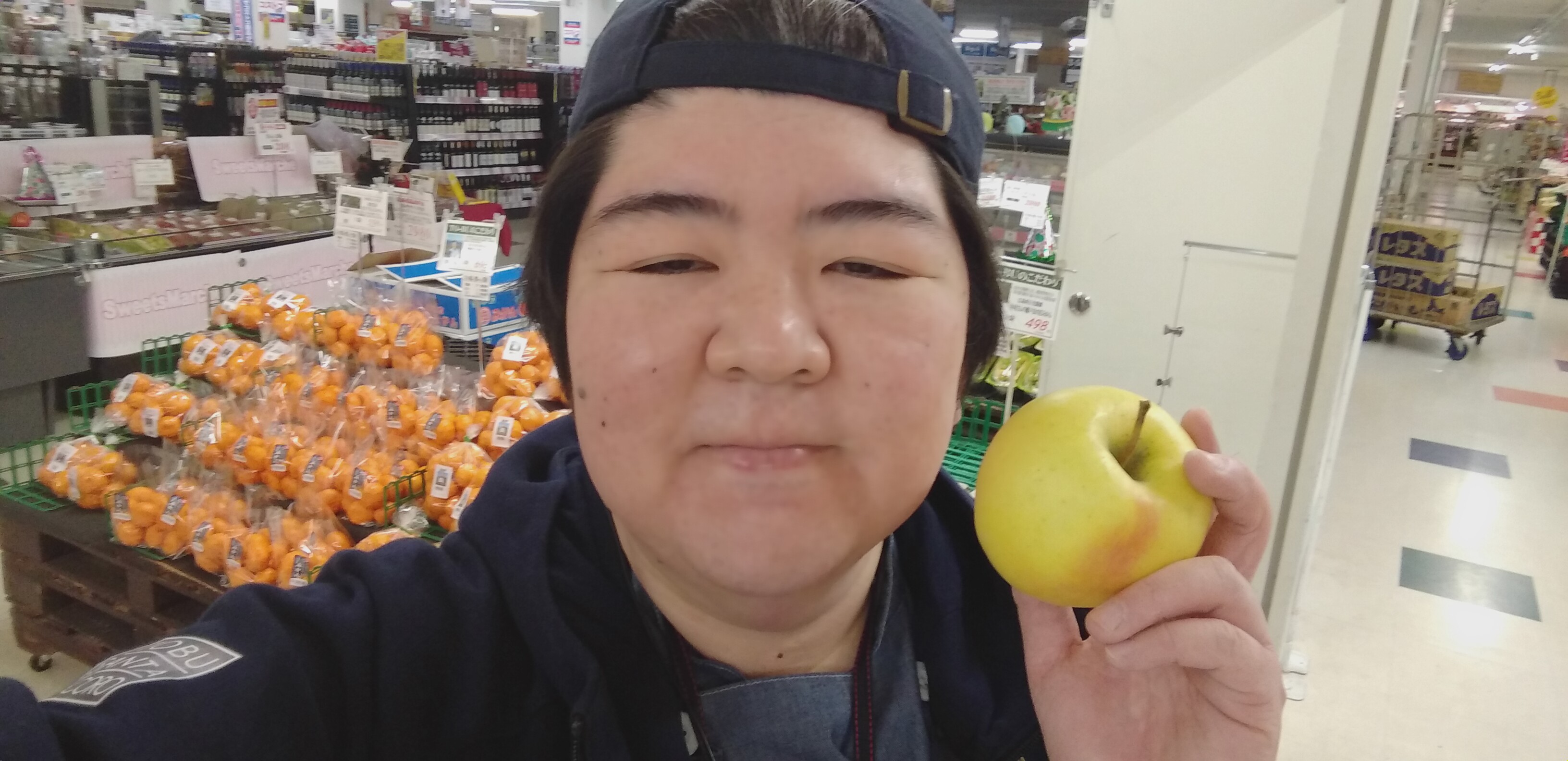 おはようございます。青果担当奥瀬です。本日はスーパー大均一祭最終日。岩手産のりんご各種が、1玉99円です。写真はぐんま名月りんご。他に、シナノスイート、シナノゴールドもあります。是非ご利用くださいませ。御来店お待ちしております!