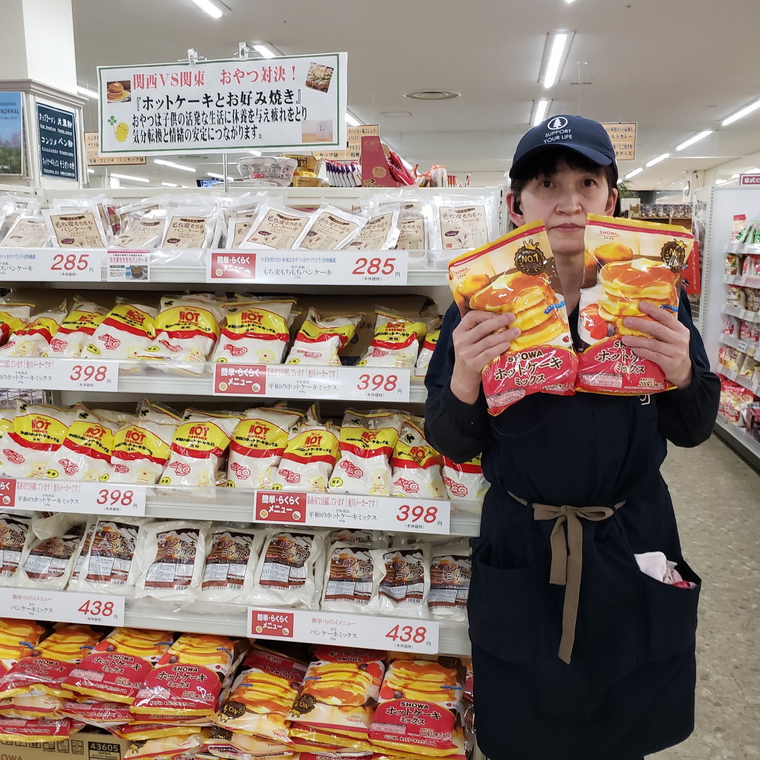 食品コーナーからは昭和産業 ホットケーキミックス! 便利な個包装タイプです!約12枚分 価格は200g×3袋入りで199円です。是非お買い求めくださいませ。