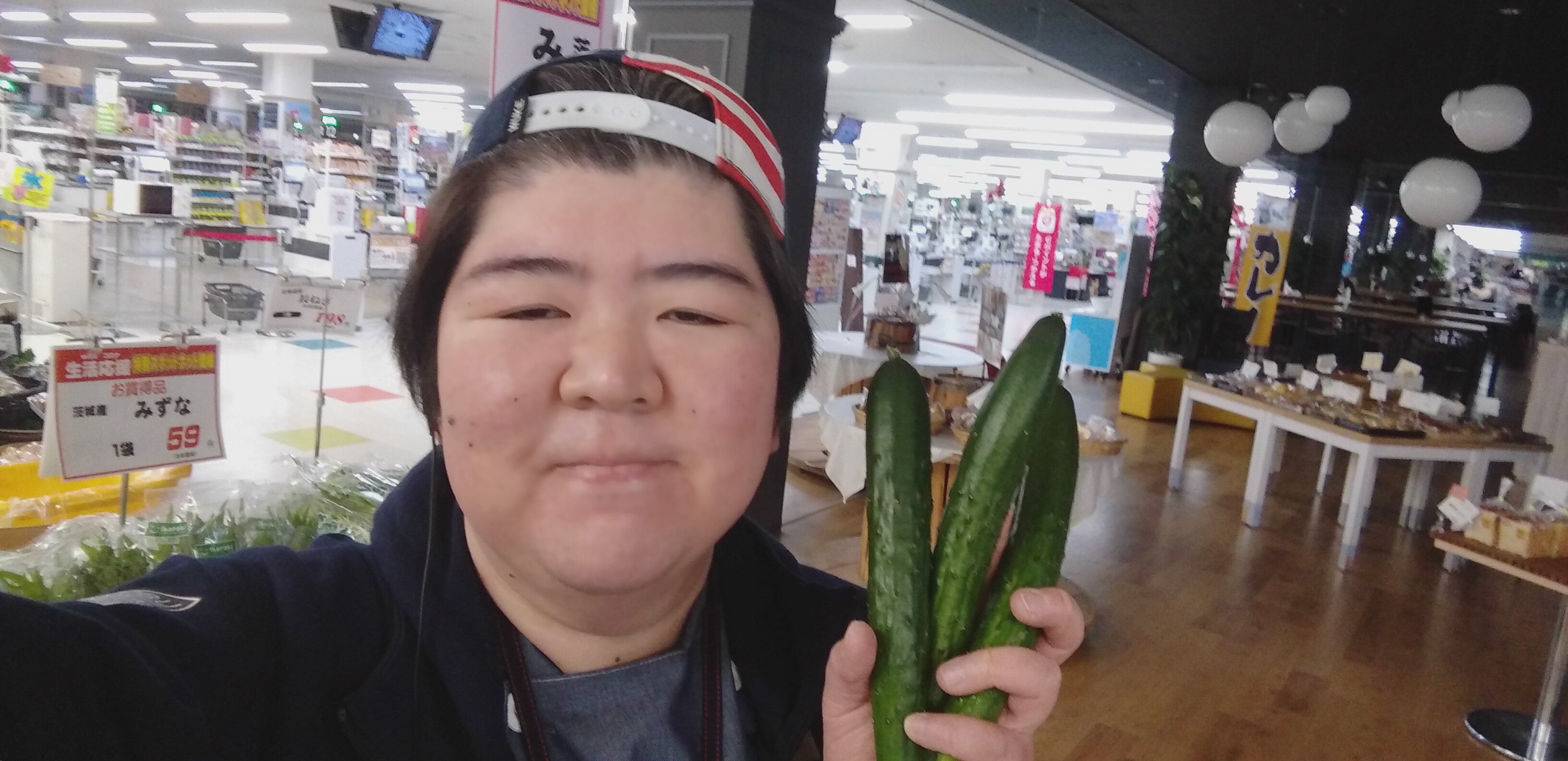 おはようございます。青果担当奥瀬です。本日からはコストコセールですが、青果コーナーでは茨城直送セールを開催します。高知産他 きゅうり 1本49円とお買い得です。その他にもお買い得商品を取り揃えております。是非ご利用くださいませ。