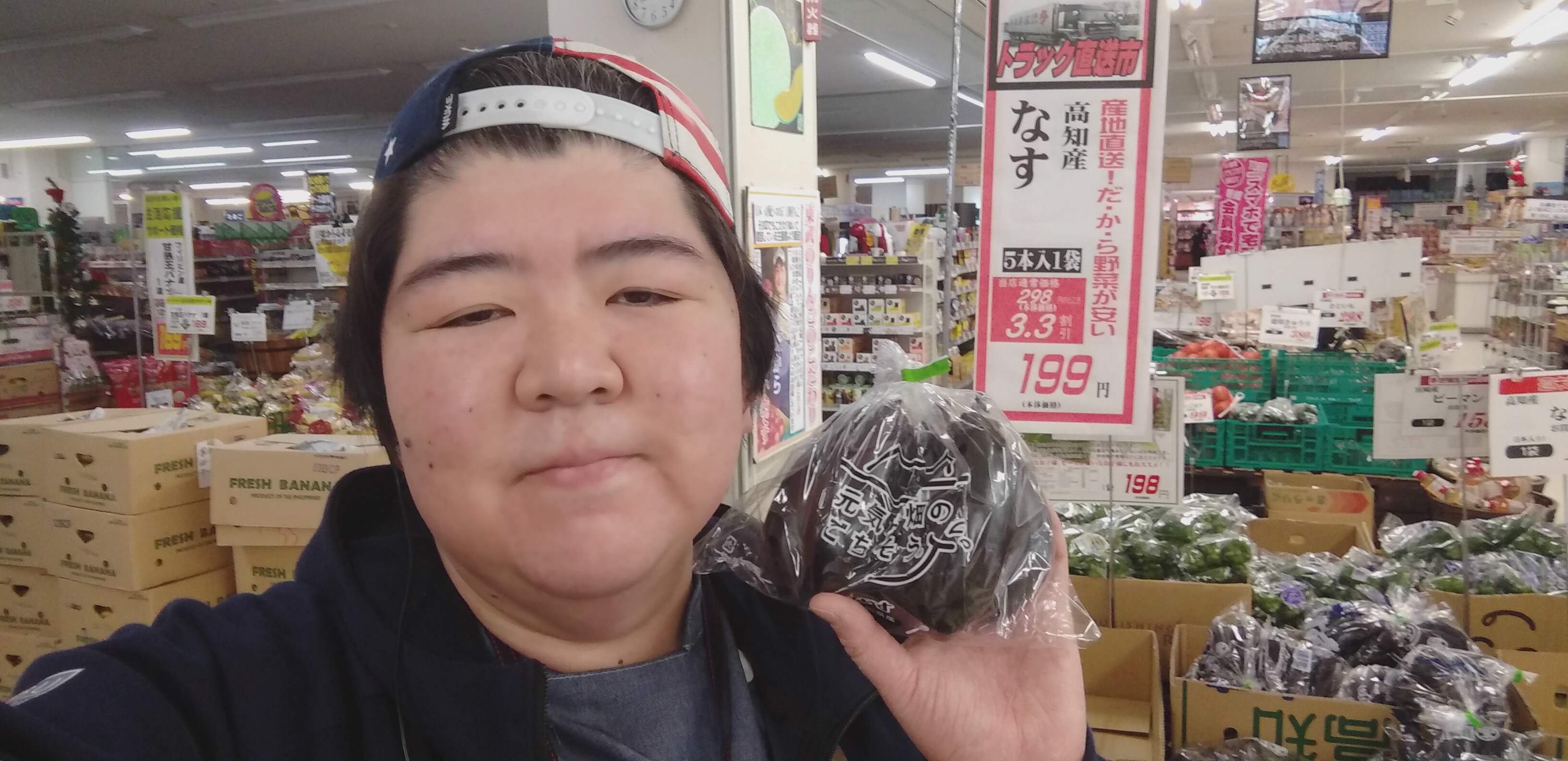 おはようございます。青果担当奥瀬です。本日も茨城直送セール開催中です。本日は 高知産 なす 1袋199円とお買い得です。その他にもお買い得商品を取り揃えております。是非ご利用くださいませ。コストコセールも開催中ですよ。