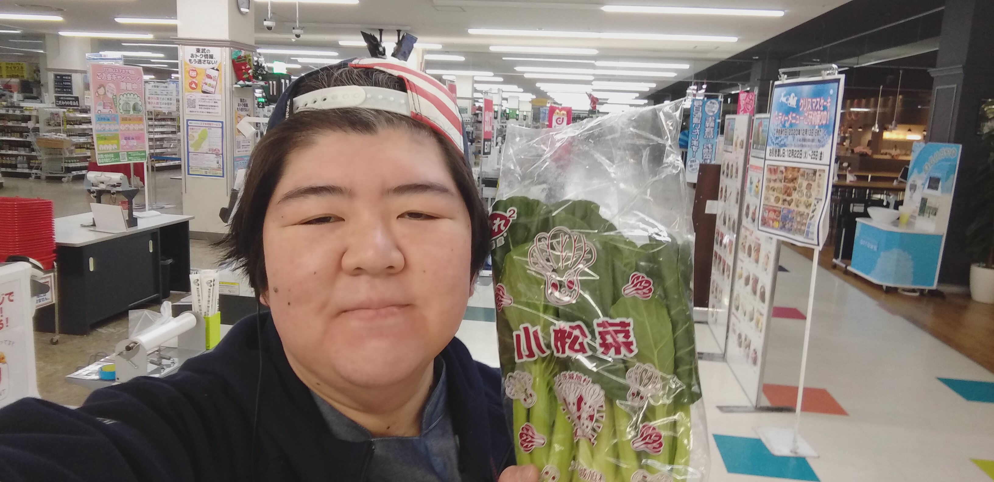 おはようございます。青果担当奥瀬です。本日もコストコセール&茨城直送セール開催中です。青果コーナーでは、茨城産の小松菜がお買い得です。1袋 59円となっております。お買い得ですので、是非ご利用くださいませ。