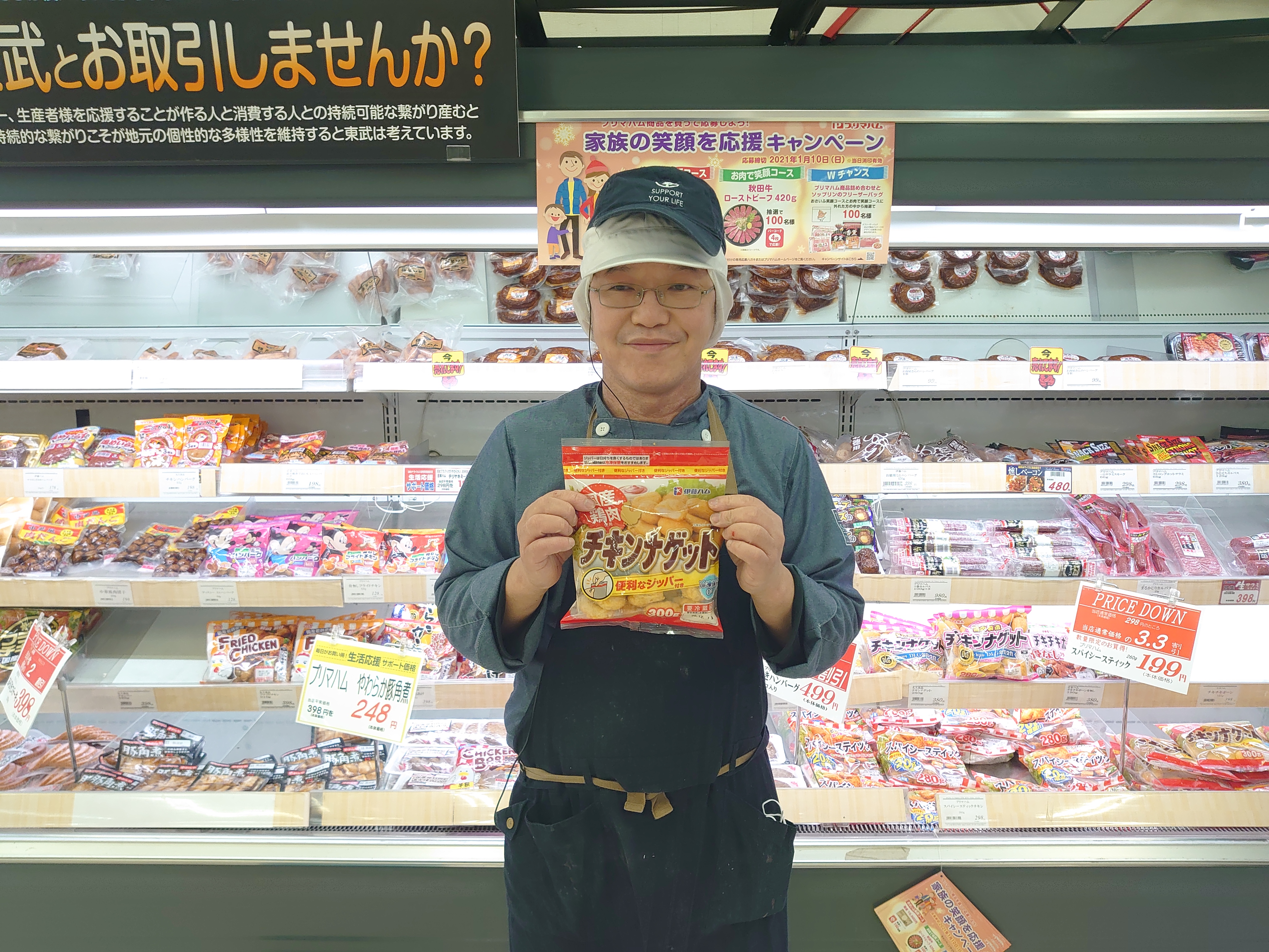 おはようございます。ミート担当近藤です。国産の鶏肉を使用した大袋のチキンナゲットです。食感の軽い衣を使い、ソースなしでもおいしくお召し上がり頂けますように味付けしました。