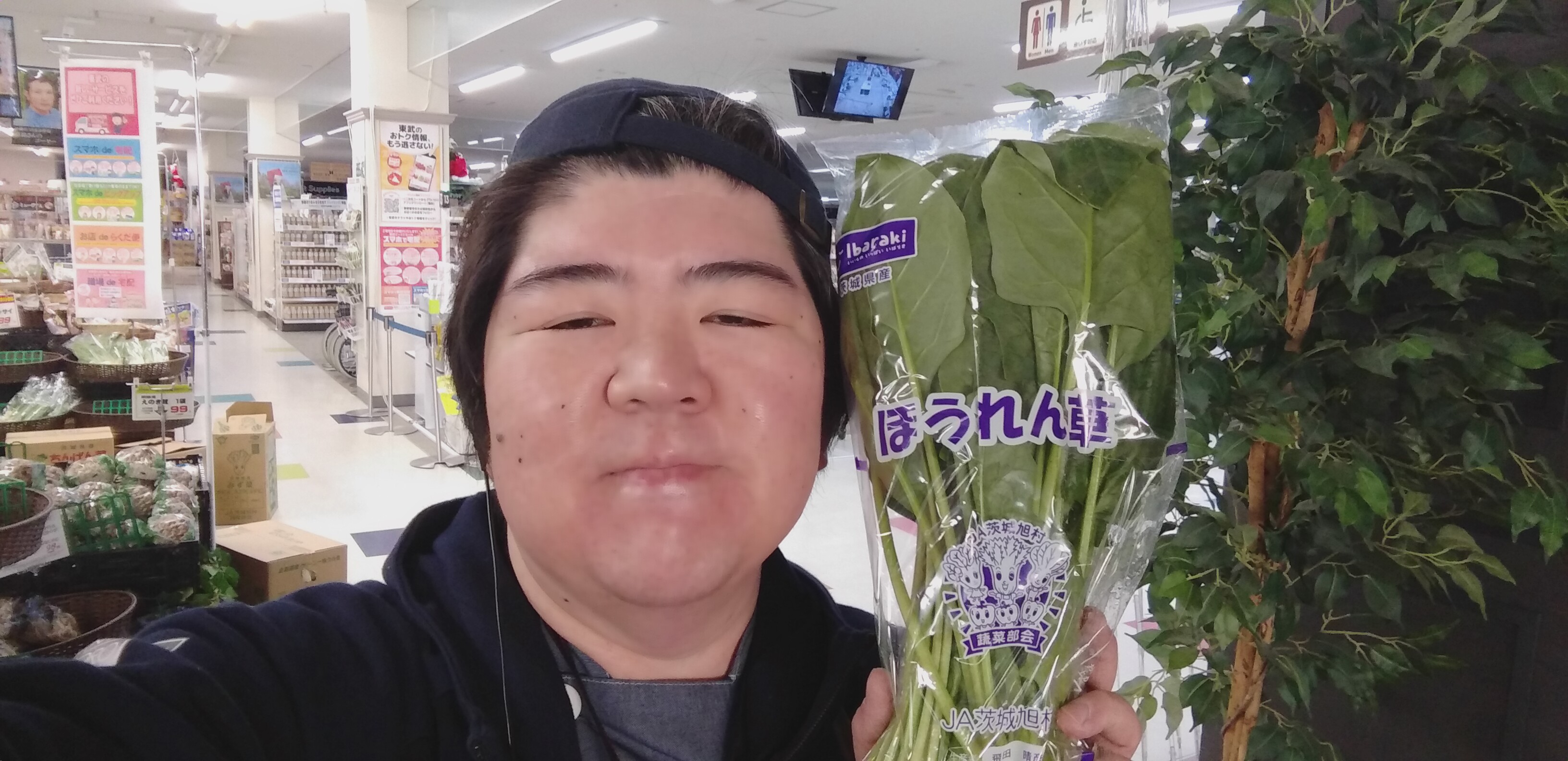 おはようございます。青果担当奥瀬です。本日はほうれん草がお買い得です。茨城産 ほうれん草 1袋 99円です。是非ご利用くださいませ。