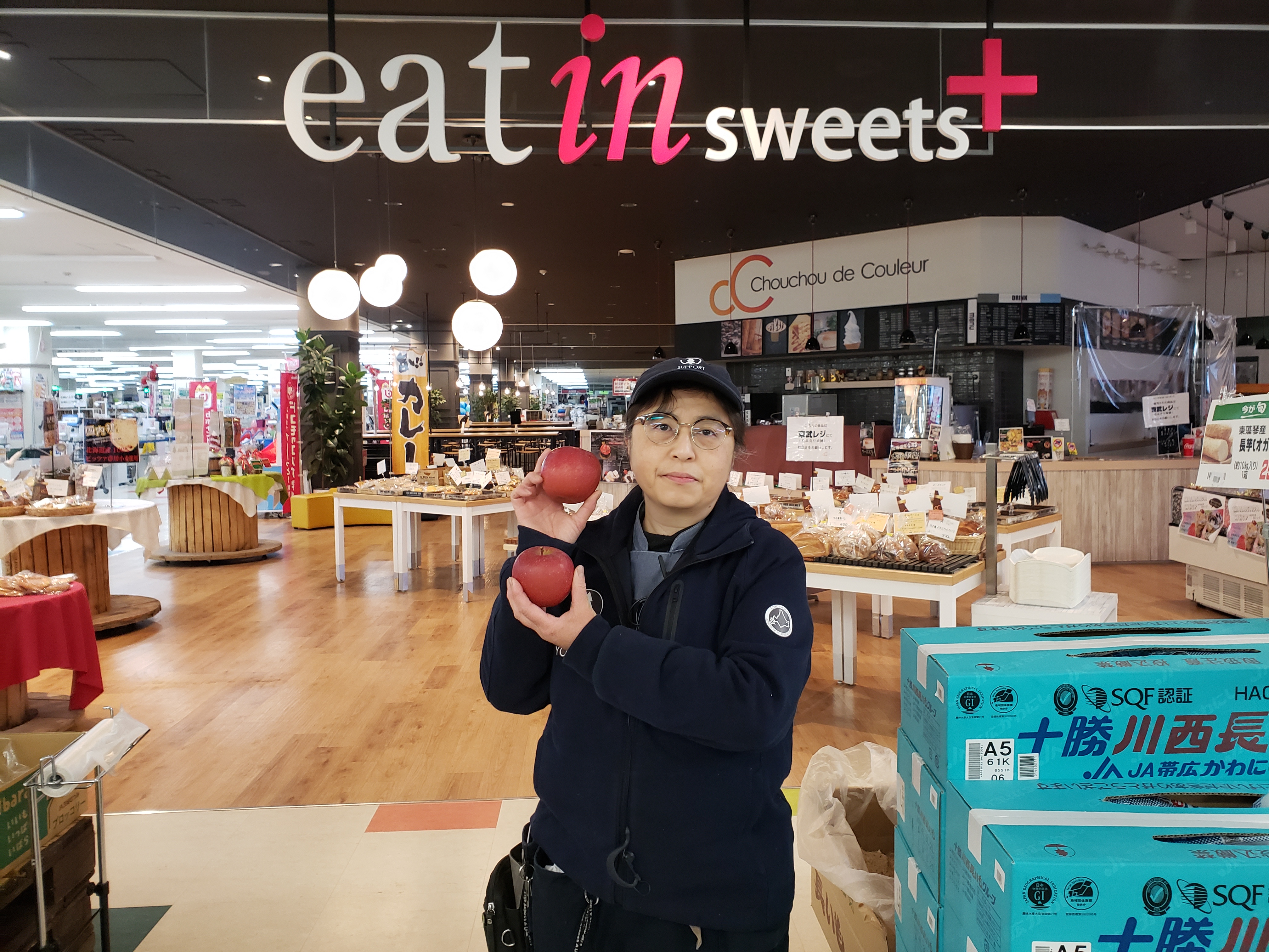 青果コーナーのオススメ!山形産サンふじりんごがお買得です。1玉99円にて販売します