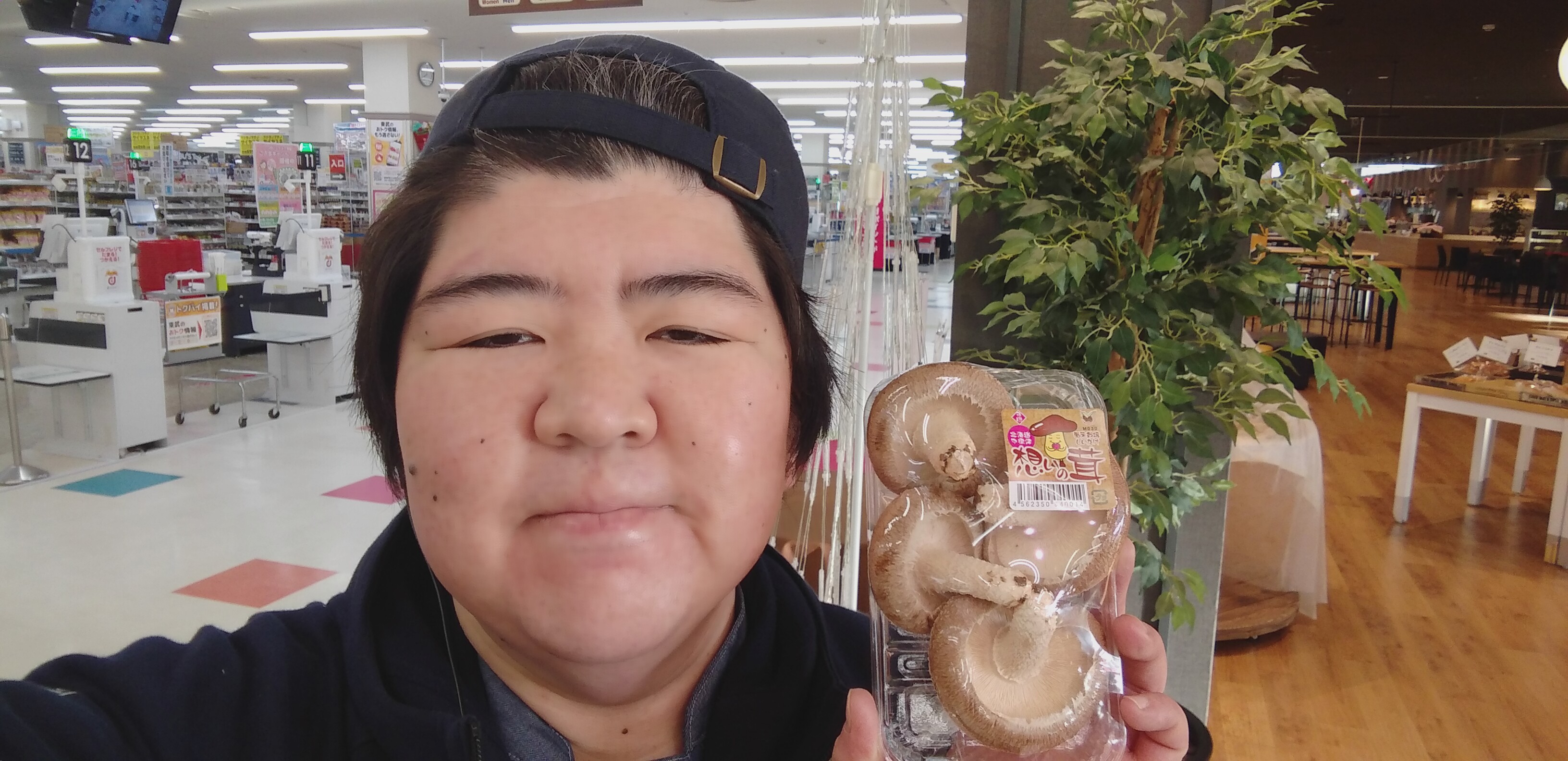 おはようございます。青果担当奥瀬です。本日もスーパー大均一祭です。中標津産生しいたけが1パック88円です。旨味たっぷりの生しいたけ、是非ご利用くださいませ。御来店お待ちしております。