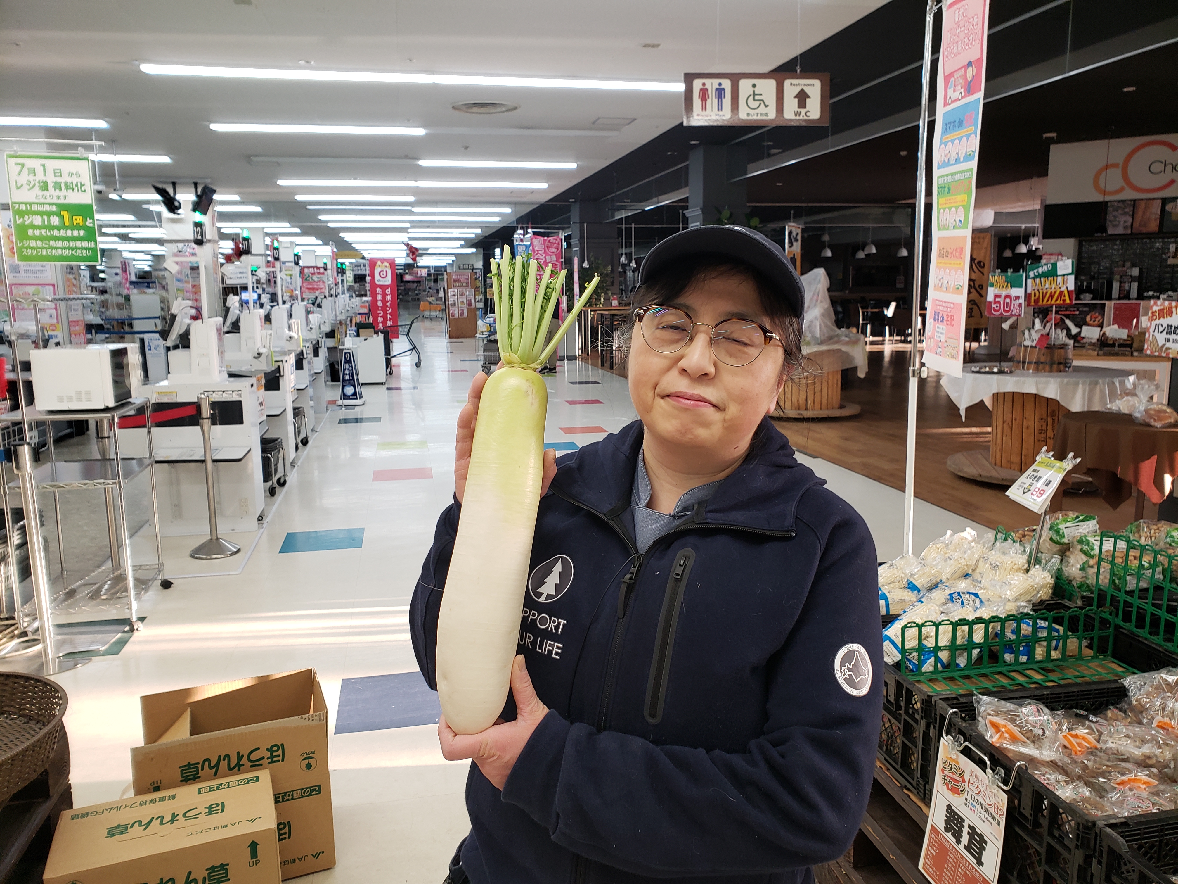 青果コーナーのオススメ!神奈川産大根がお買得です。1本99円にて販売します