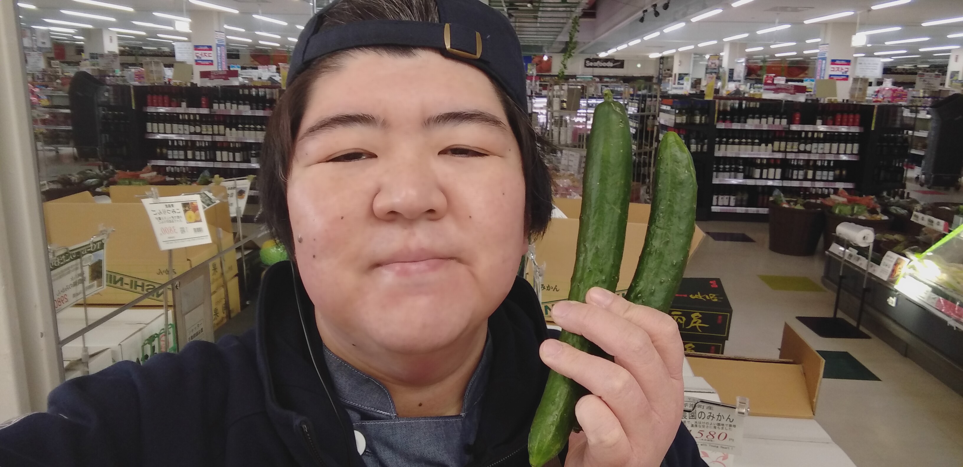 おはようございます。青果担当奥瀬です。本日よりスーパー大均一祭開催です。お買い得商品を多数ご用意しております。本日は高知産他 きゅうり 1本 49円です。是非ご利用くださいませ。