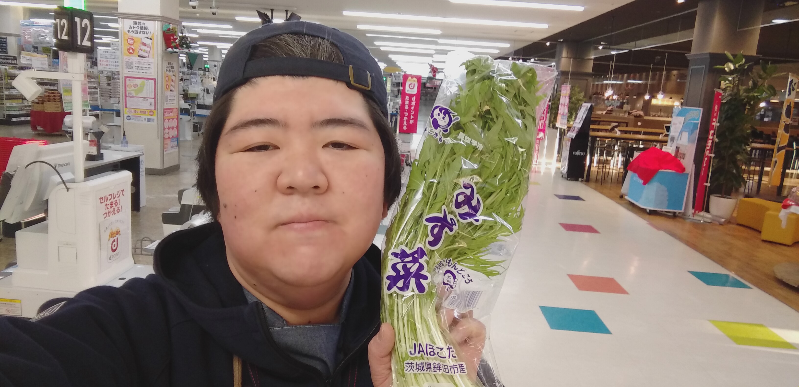おはようございます。青果担当奥瀬です。本日は水菜がお買い得です。茨城産水菜 1袋 99円です。炒め物、和え物、サラダにも。是非ご利用くださいませ。