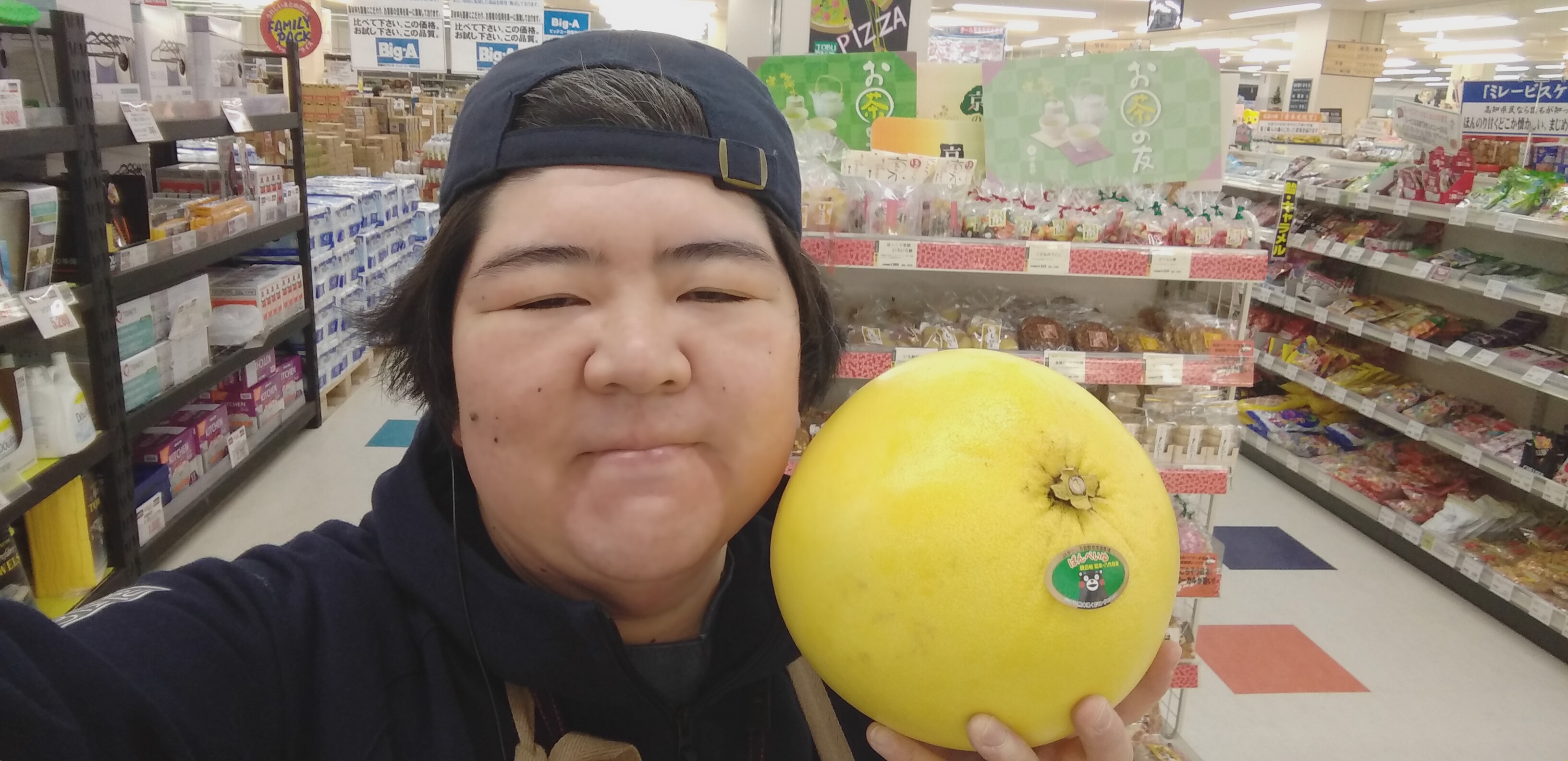 おはようございます。青果担当奥瀬です。本日はばんぺいゆ(晩白柚)のご紹介です。世界最大級の柑橘類、ばんぺいゆ。皮が厚く、保存性が高い柑橘です。また、果肉を食べた後の皮も、砂糖漬けにしたら2度美味しい。是非ご利用くださいませ。熊本産 ばんぺいゆ 1玉 1280円です。