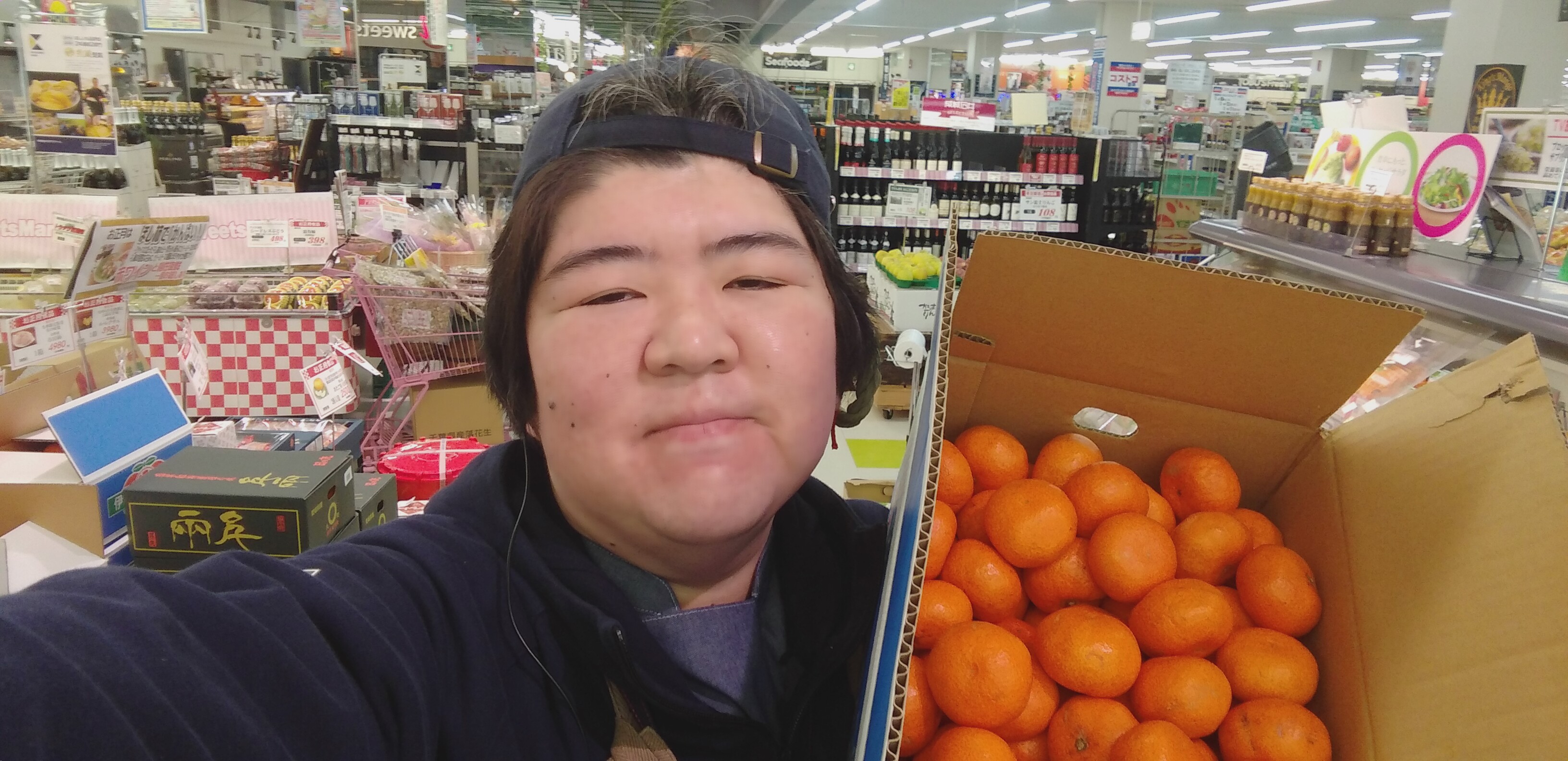 おはようございます。青果担当奥瀬です。本日は、長崎の山口おばちゃんのみかんのご紹介です。このみかんを食べると、普通のみかんには戻れない味わいです。濃厚な甘さとコクを是非、お試しください。写真は5キロ入り1箱、2980円です。皆様の御来店をお待ちしております。