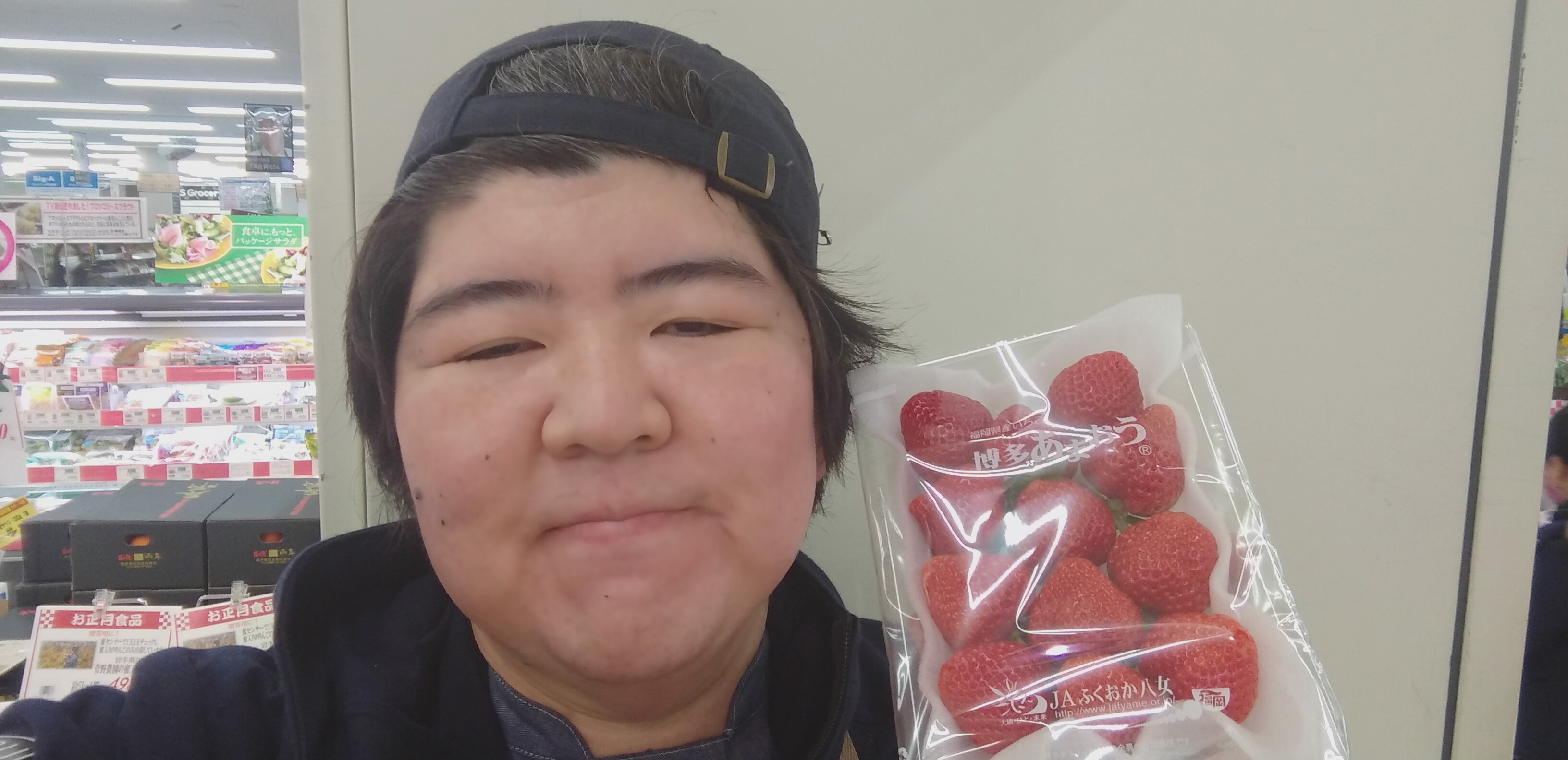 こんにちは。青果担当奥瀬です。本日も手土産になりそうな果物、ご用意しております。福岡産のあまおういちご 1パック980円です。是非ご利用ください。