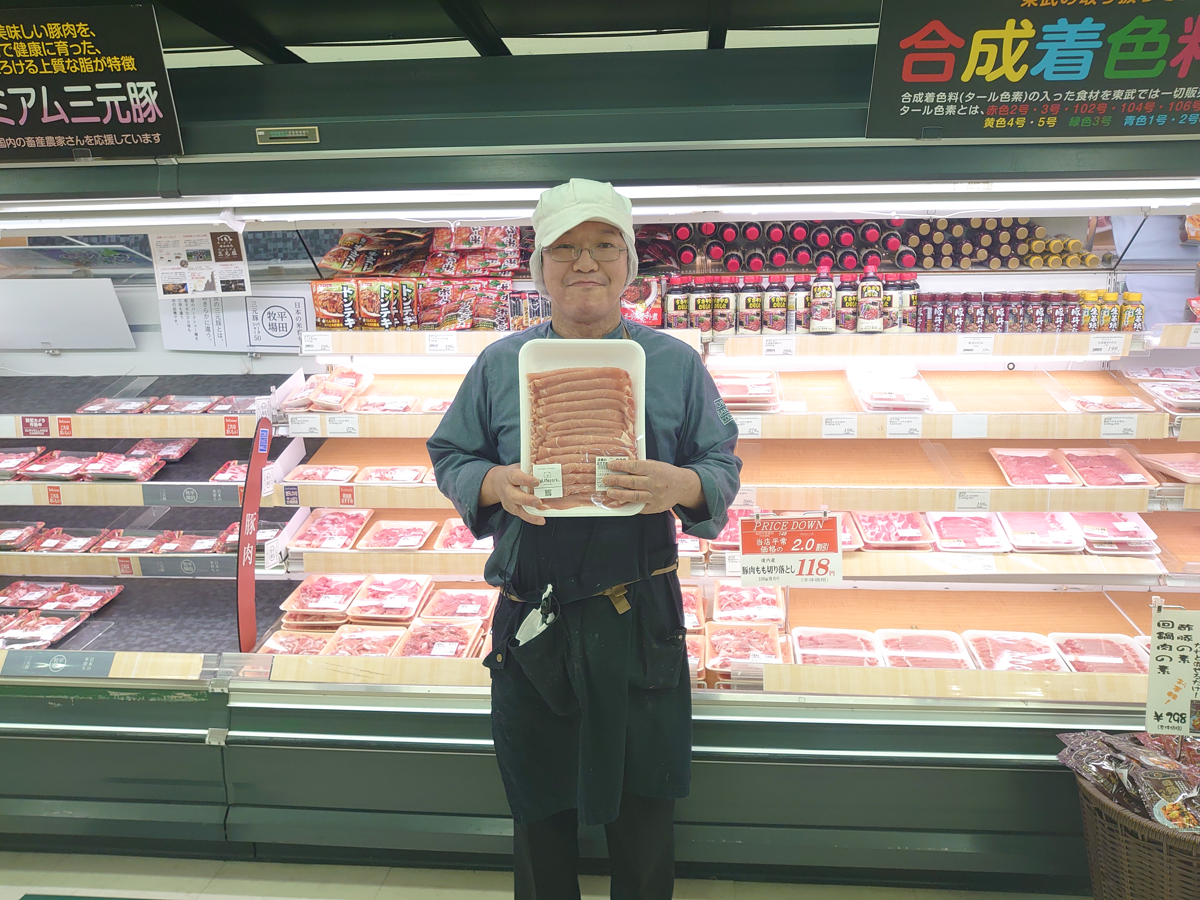 おはようございます。ミート担当近藤です。使用用途の一例と致しまして白菜と豚ロースうす切り肉のレンジ蒸しでレンチンで時短。バラ肉より脂少ないからヘルシーです。
