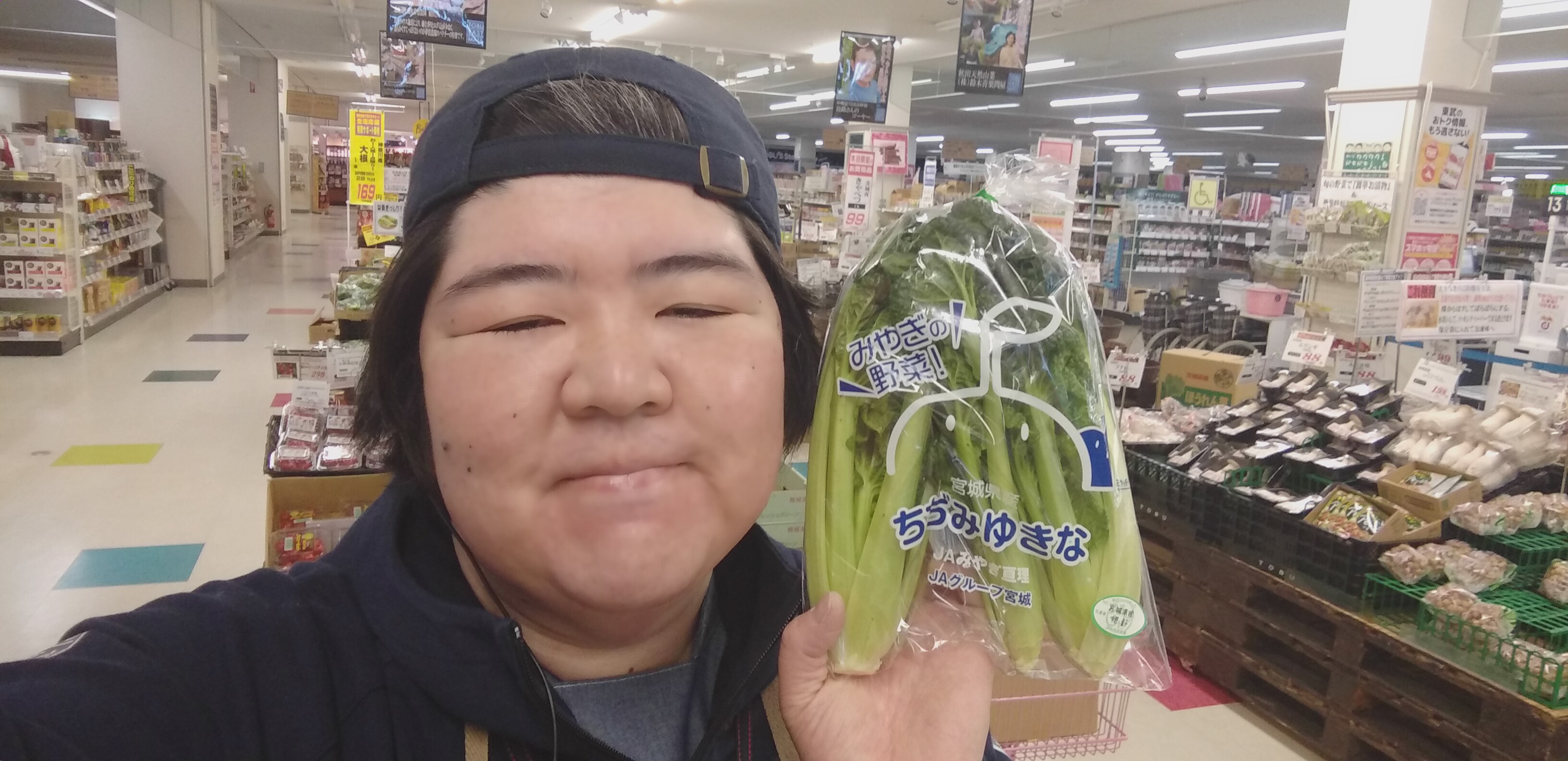 おはようございます。青果担当奥瀬です。本日はちぢみゆきなが入荷してます。炒め物、おひたし、和え物にいかがでしょうか?宮城産 ちぢみゆきな 1袋 99円です。是非ご利用くださいませ。