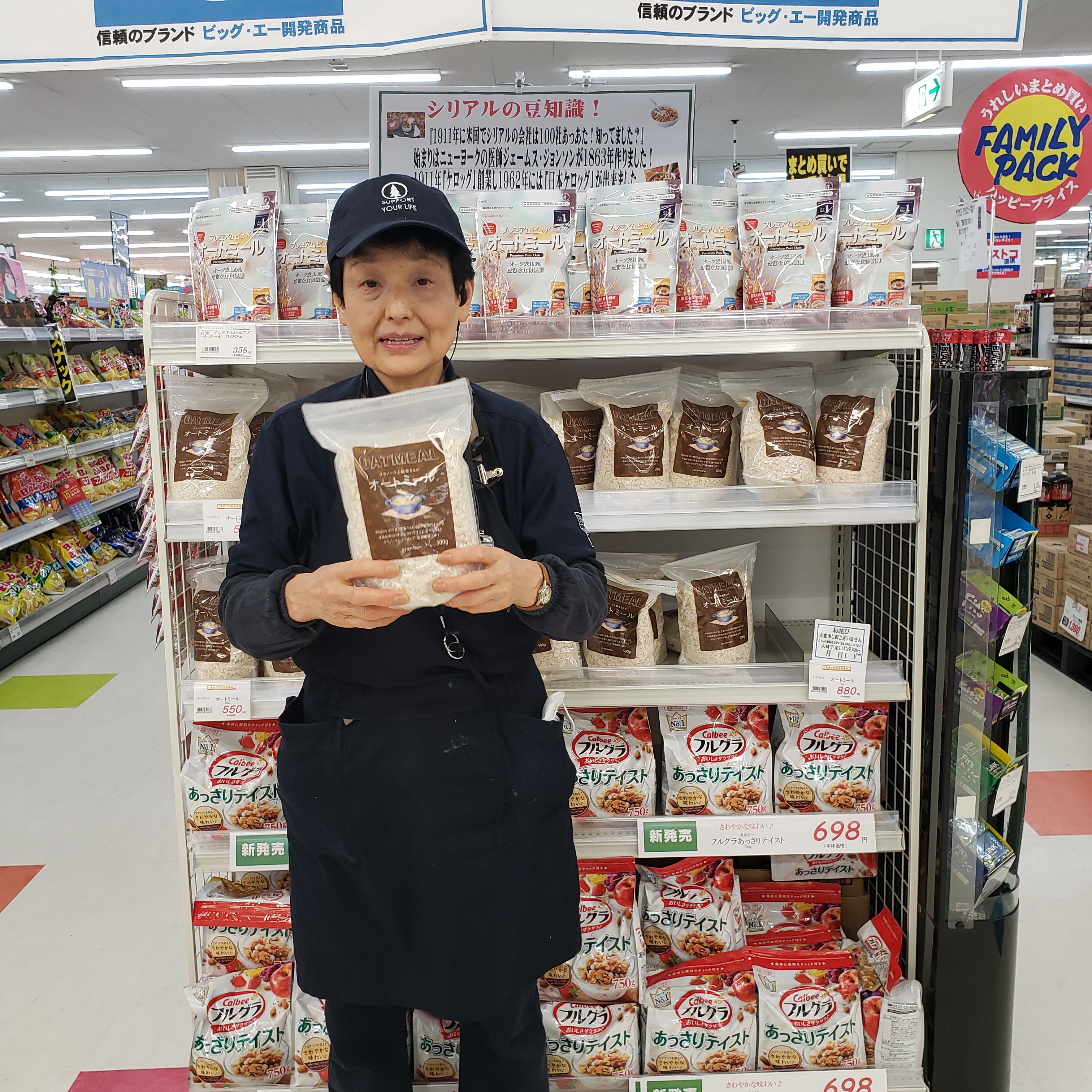 食品コーナーからは!豊富な食物繊維がたっぷりうれしい!(株)ライスアイランド グラノーラ上級者さんのオートミールです!日本の新しい食習慣へ、朝のシリアル、お昼のランチ、夜はお腹の負担軽減減らしに!価格は500g入りで550円です!是非お買い求めくださいませ。