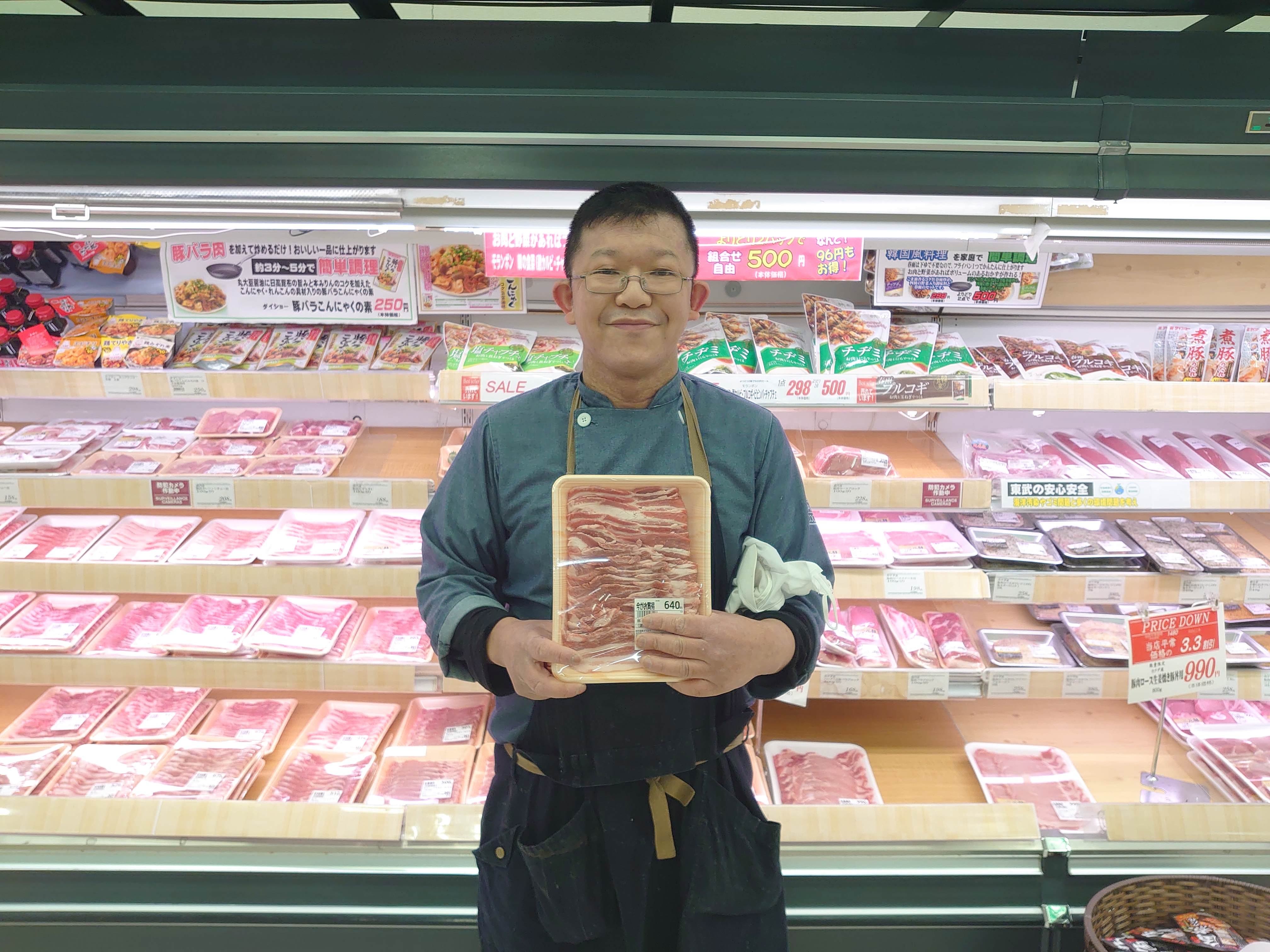 おはようございます。ミート担当近藤です。使用用途の一例と致しまして豚バラの大根の甘辛ソテーで豚バラ大根の炒め物バーション。大根を薄切りにすることで時短に!