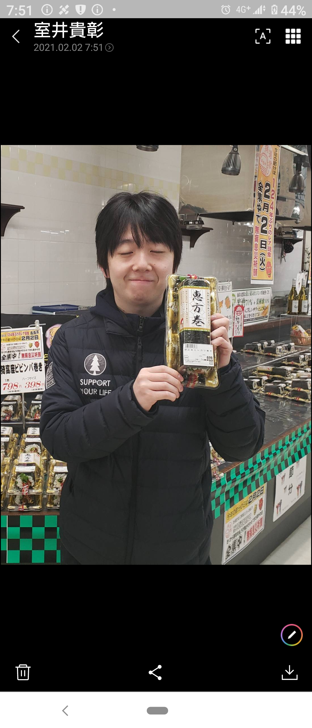 おはようございます。ミート担当室井です。本日、2月2日は124年ぶりと言われる節分の日です。今年の方角は南南東です。当コーナーのおすすめ商品はヒレかつ巻きです。他にも多数ありますので宜しくお願い致します。