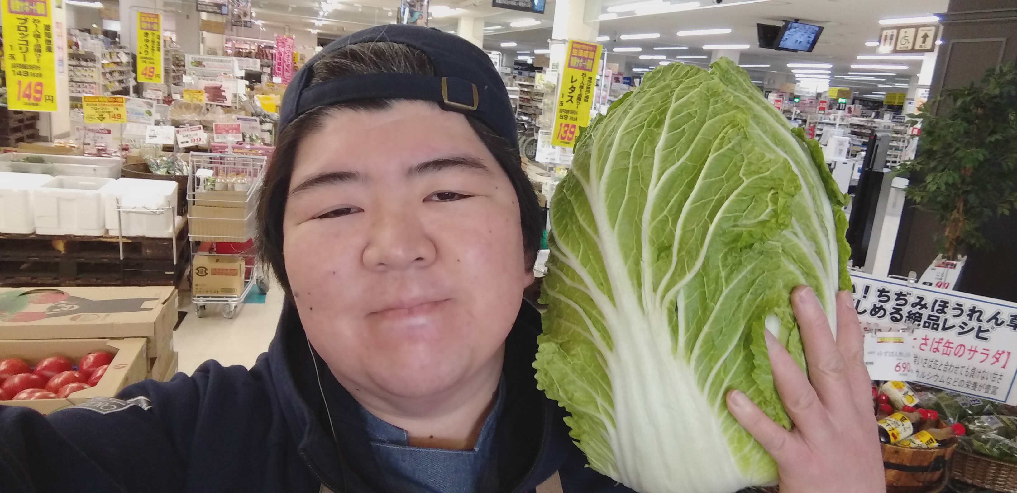 おはようございます。青果担当奥瀬です。本日もスーパー大均一祭開催中。茨城産の白菜1玉299円です。シチューに、おひたしに、漬物に。色々使える白菜はいかがでしょうか?是非ご利用くださいませ。