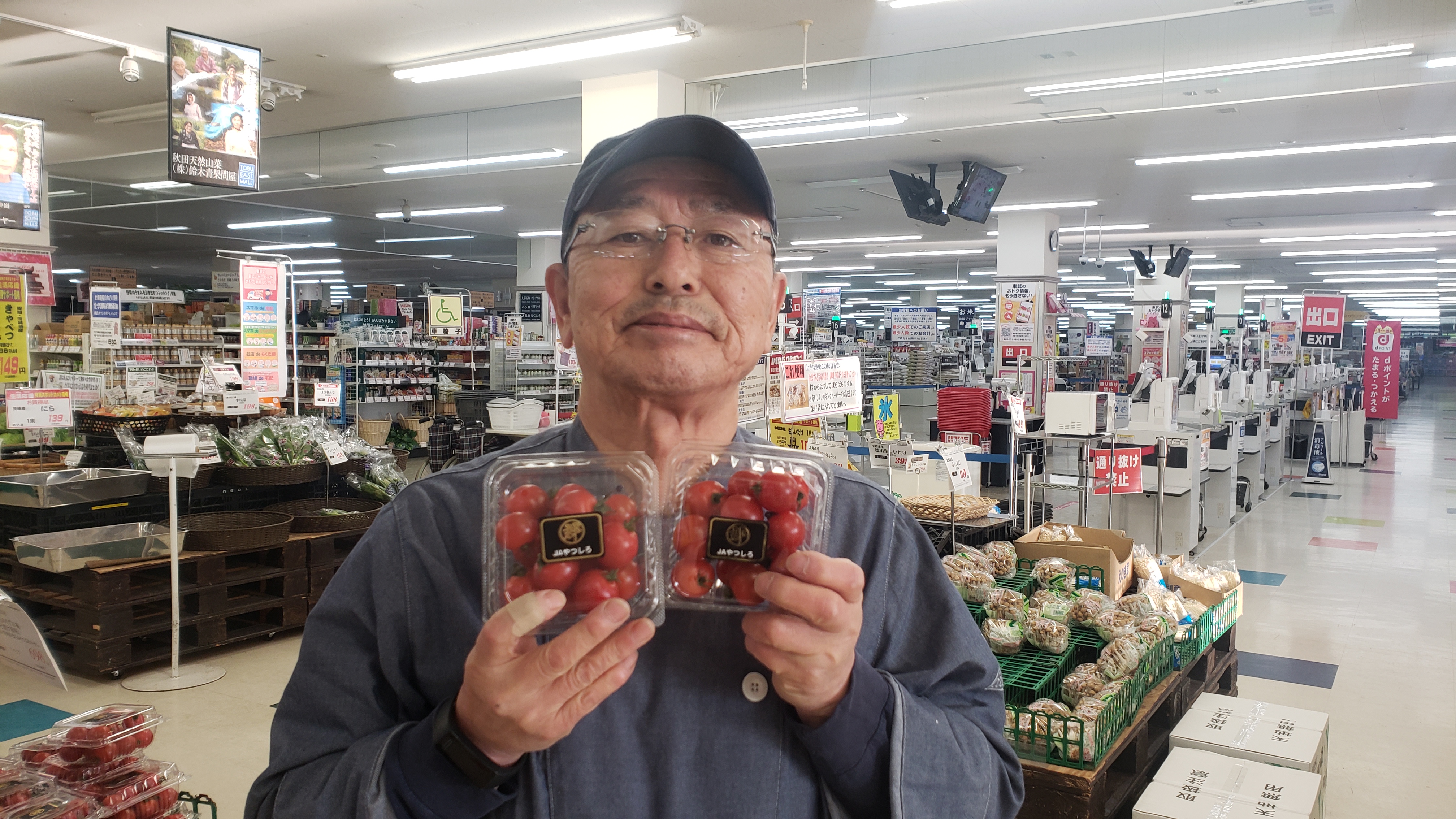 青果コーナーのオススメ!熊本産ミニとまとがお買得です。1パック159円にて販売します