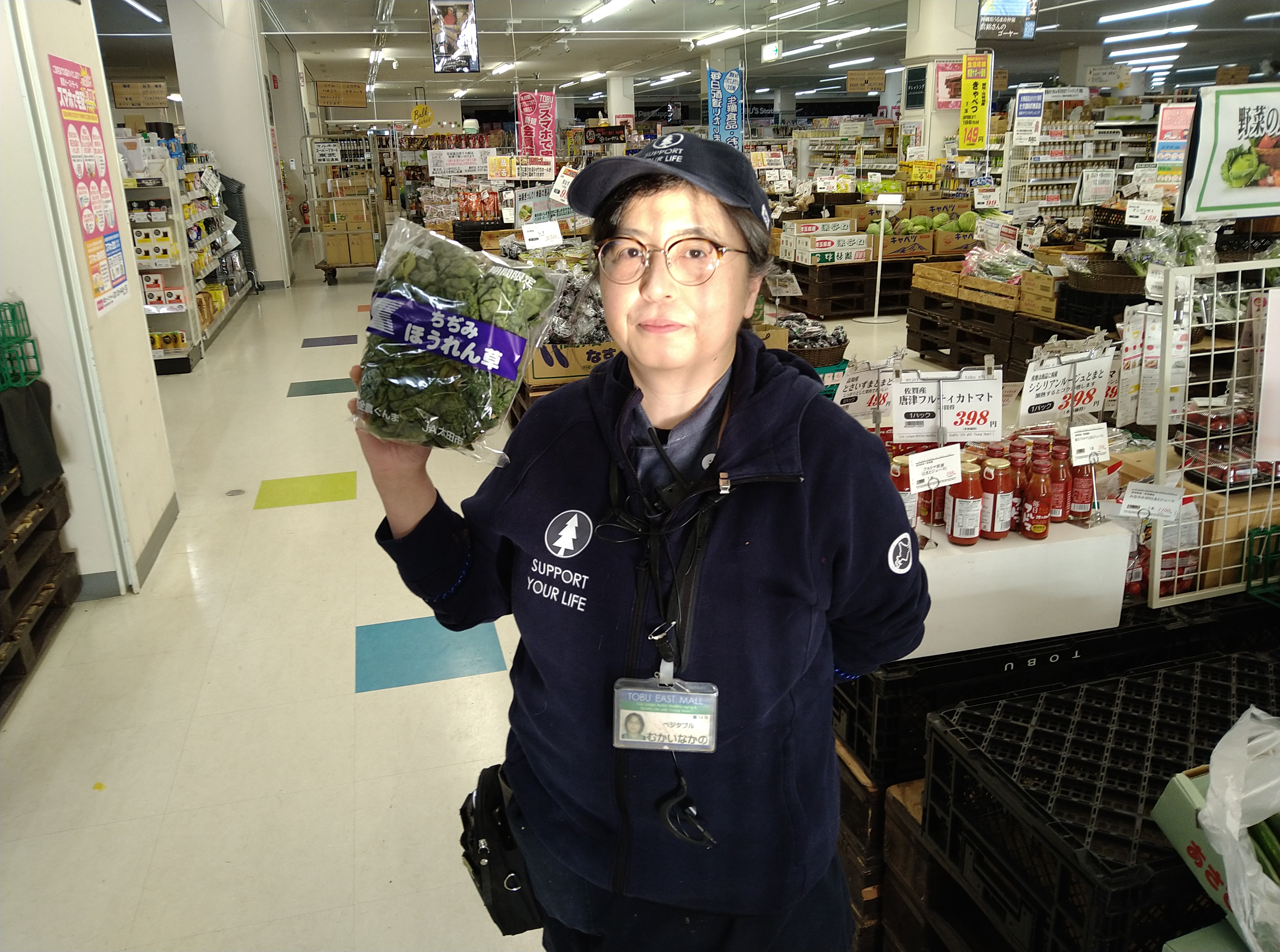 冬季限定野菜 群馬産ちぢみほうれん草1袋155円。葉は肉厚で甘味が強いほうれん草です。 おひたし、炒め物におすすめ