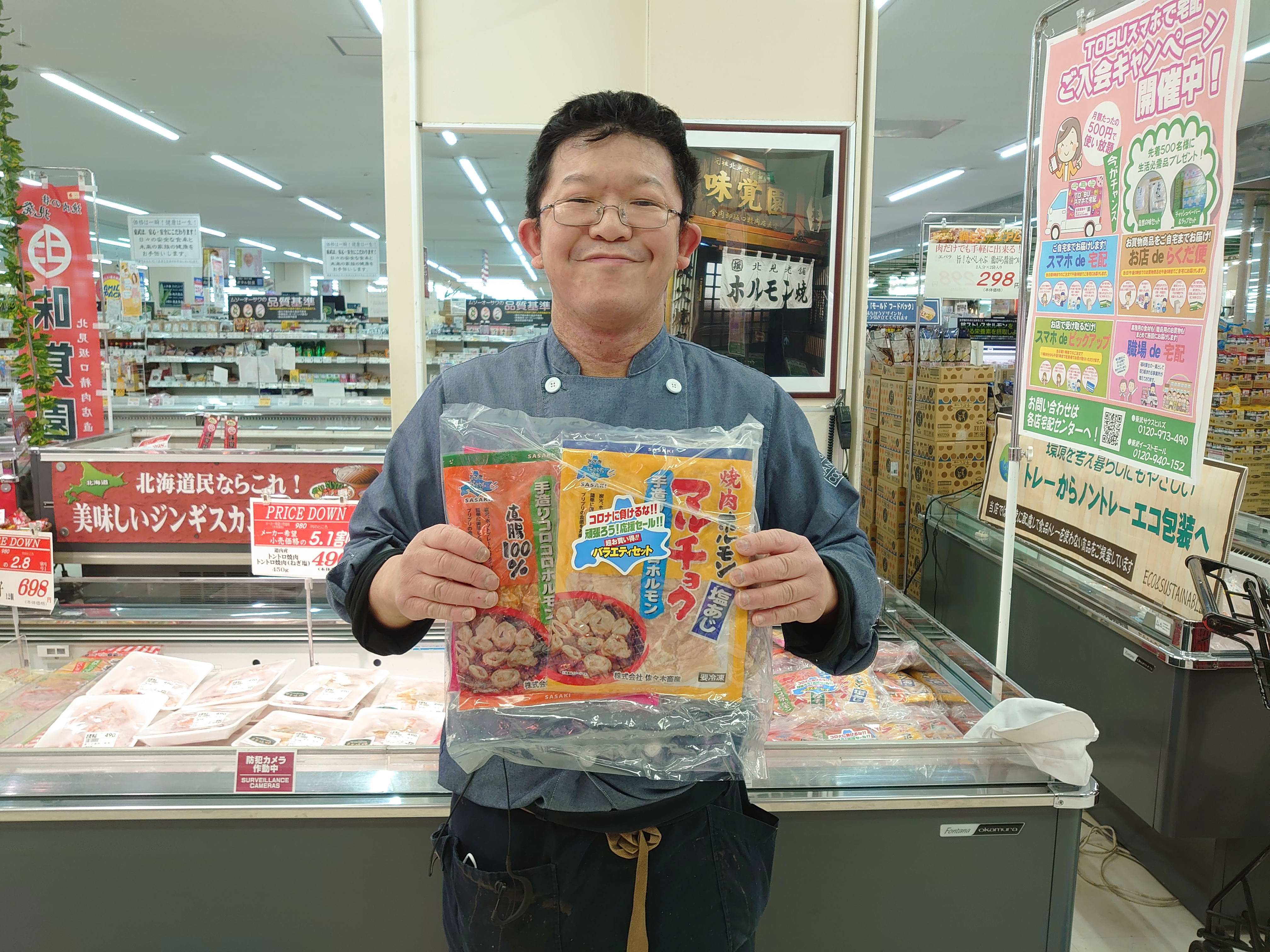 おはようございます。ミート担当近藤です。豚小腸ボイルカット、豚ジンギスカン、味付け豚ホルモン味噌味、味付け豚ホルモン塩味の4種類入っててお楽しみ頂けます。